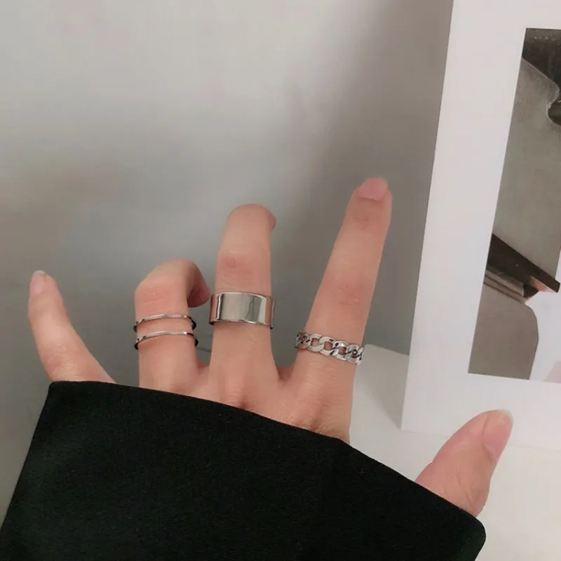Hip-hop trend personality cold wind street snap ring opening character width index finger ring buckle tail ring