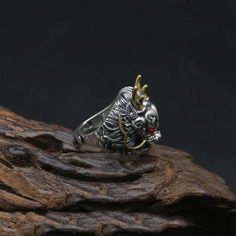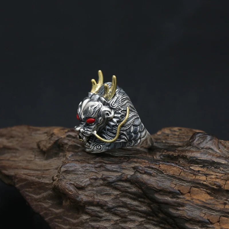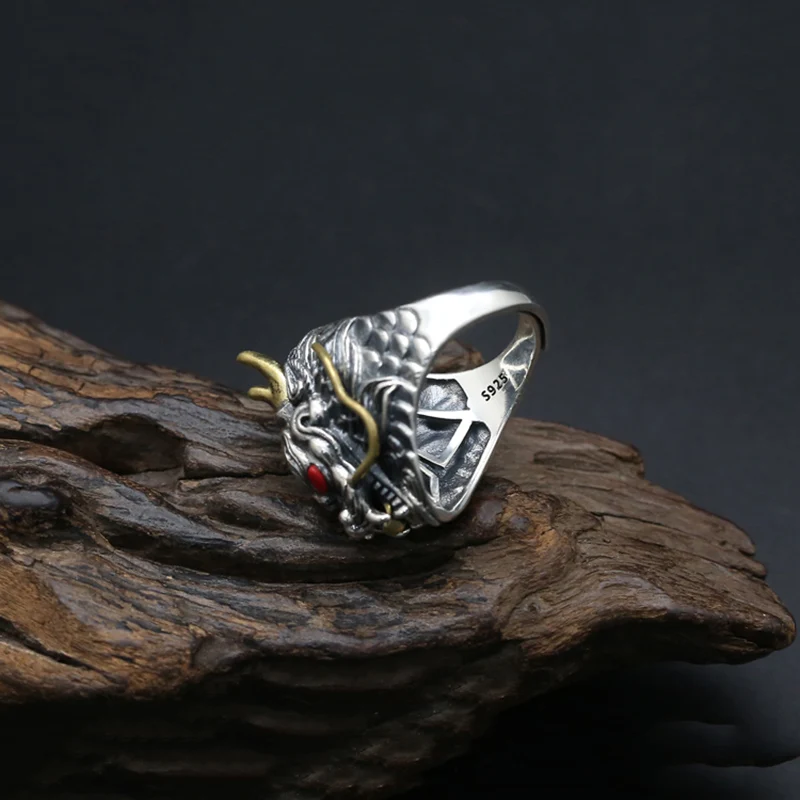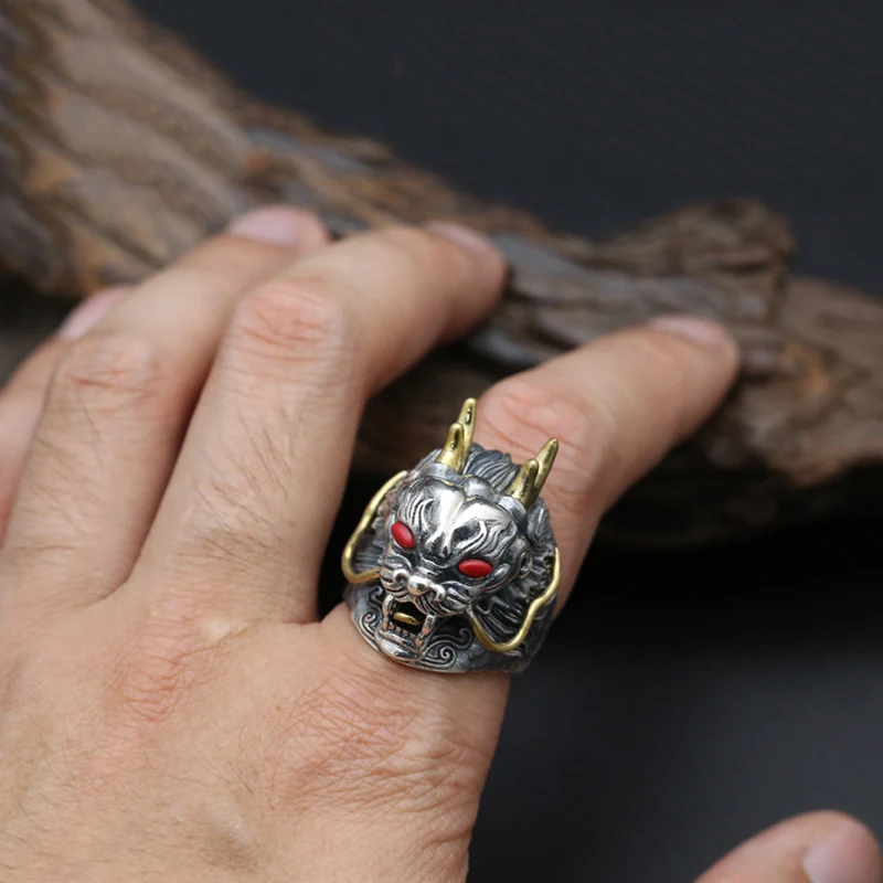 2020 925 Sterling Silver Ring Men Jewelry Dragon Lucky Natural stone engagement Ring Adjustable Gift Fine Jewelry R12