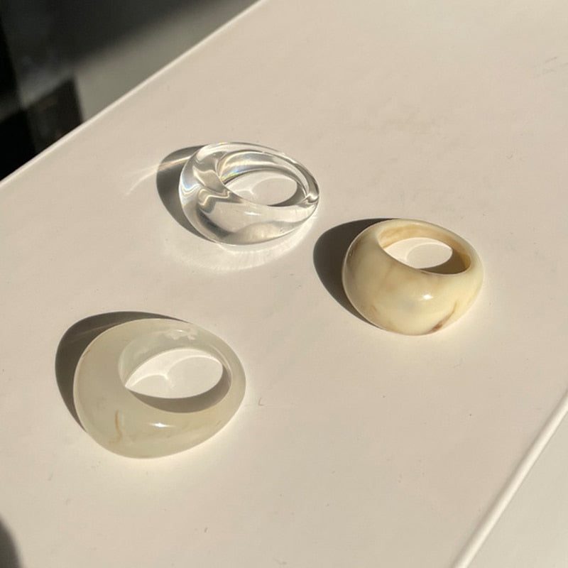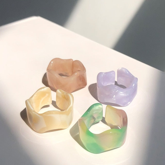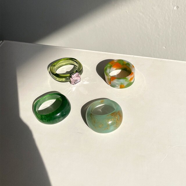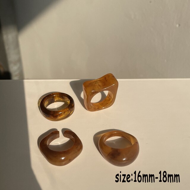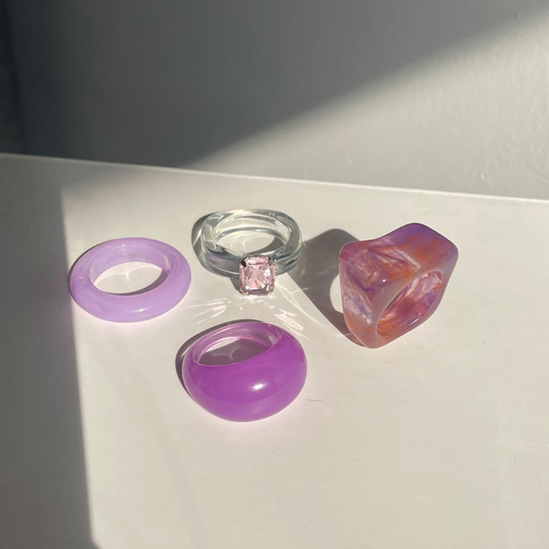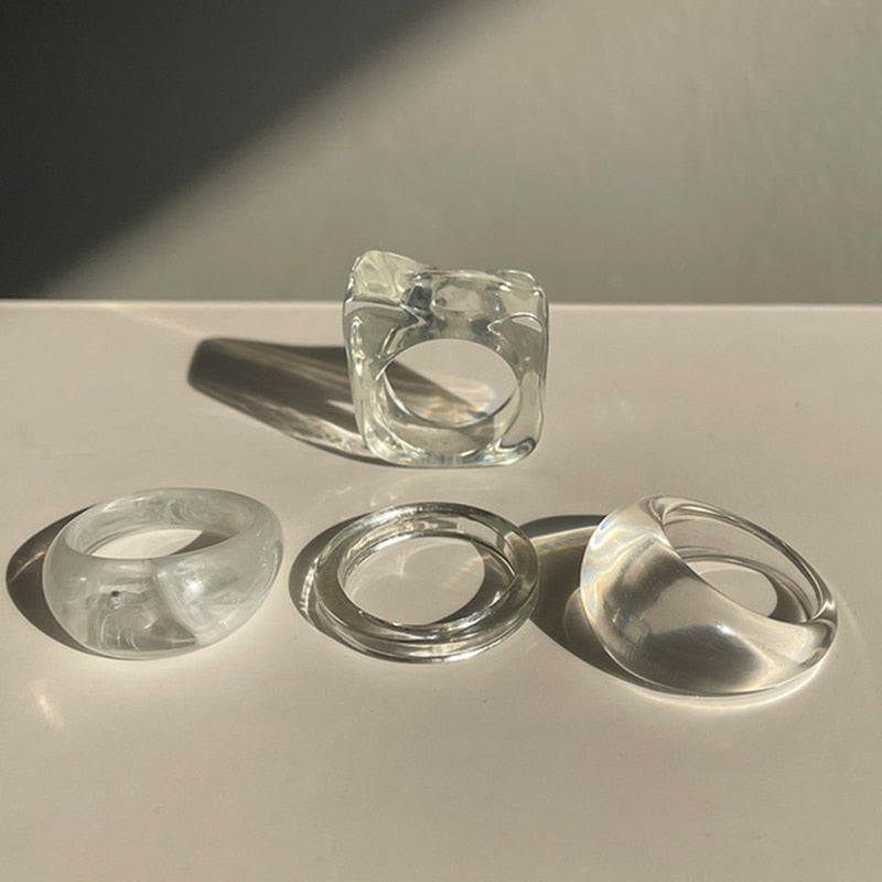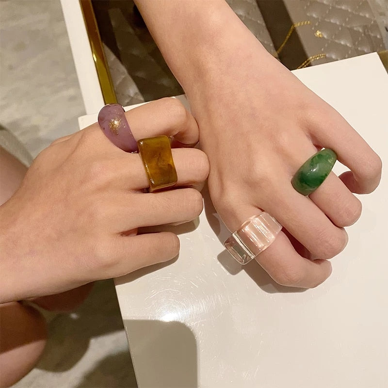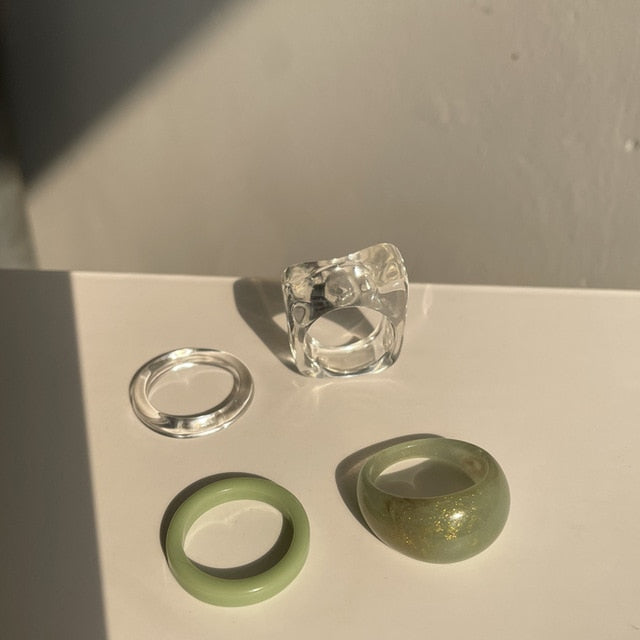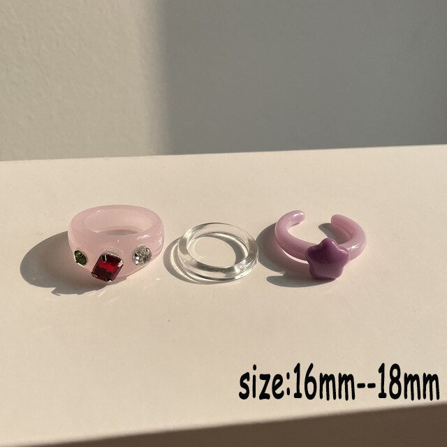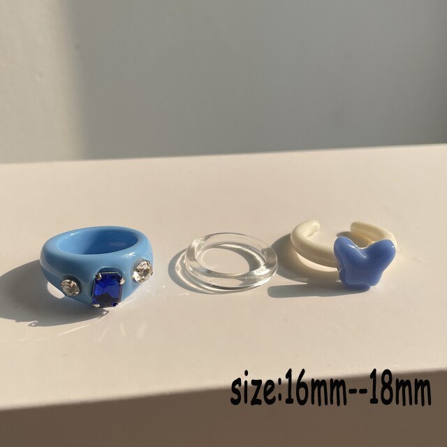 HUANZHI 2021 Colourful Transparent Resin Acrylic Rhinestone Geometric Square Round Rings Set for Women Jewelry Travel Gifts