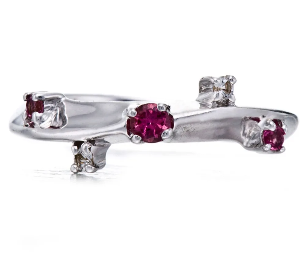 Hutang Pink Tourmaline & White Topaz Gemstone Solid 925 Sterling Silver Band Ring Beautiful Design Fine Jewelry
