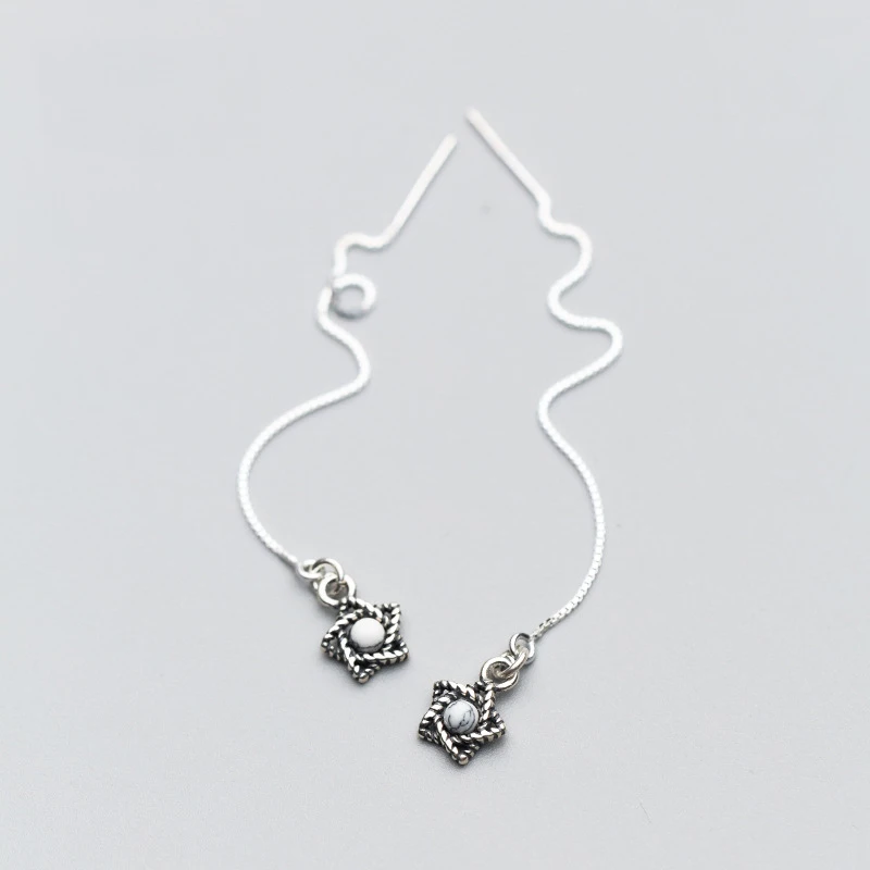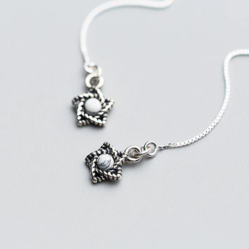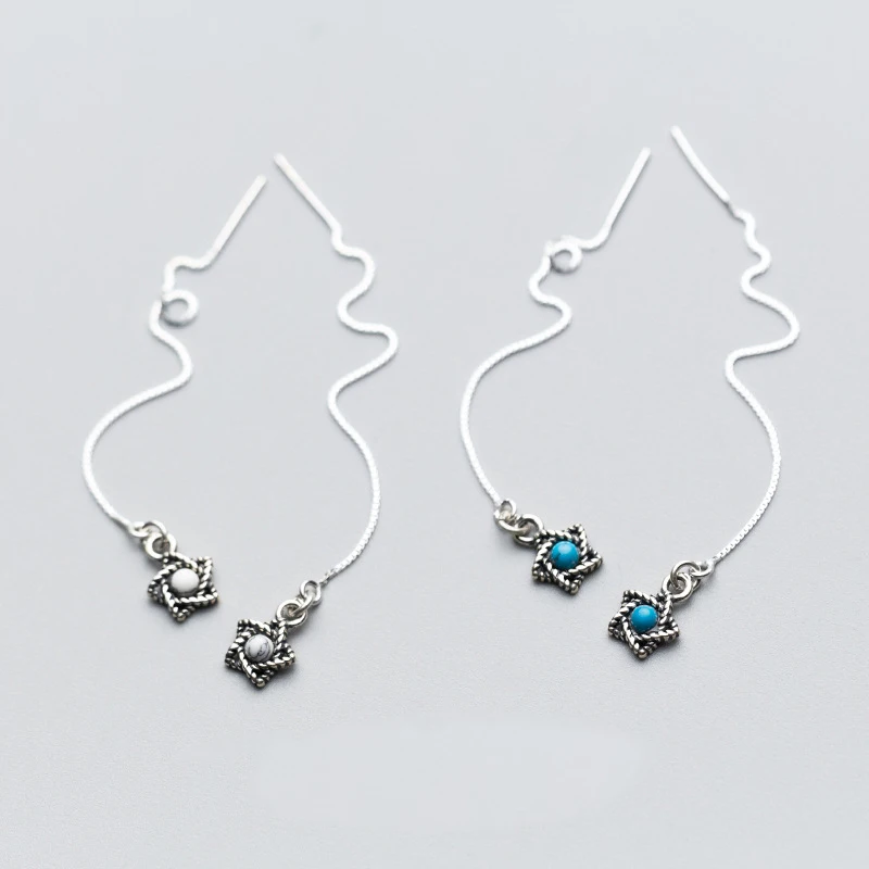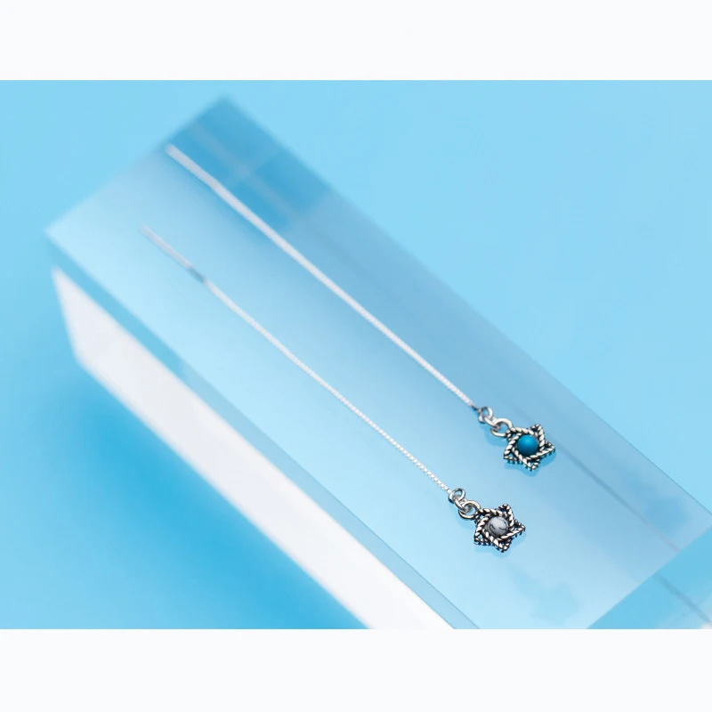 New Statement Long Chian Ear Line 925 Sterling Silver Gun Black Star Dangle with Turquoise Stone Drop Earrings for Women