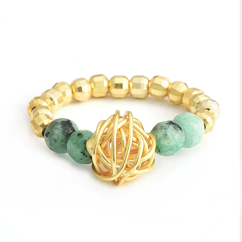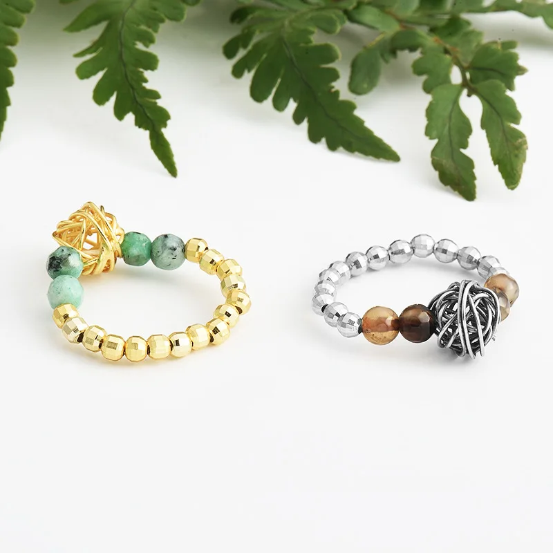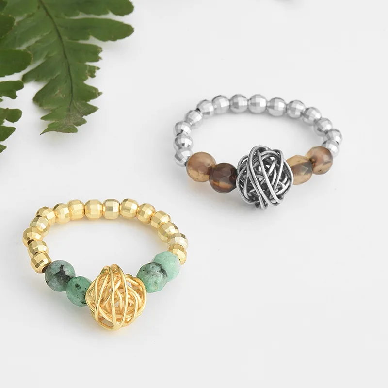 Real 925 Sterling Silver Ring Unique Statement Handmade Beads with Natural Smoky Quartz Green Stone Finger Accessories