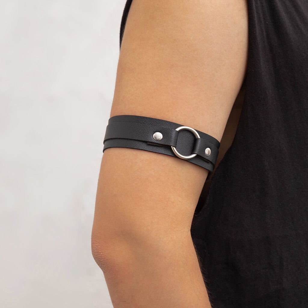 IngeSight.Z Gothic Men Sexy PU Leather Arm Chain Round Ring Adjustable Harness Belt Armband Fetish Gay Costum Bondage Cosplay