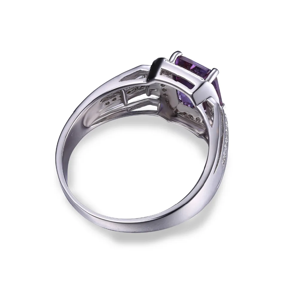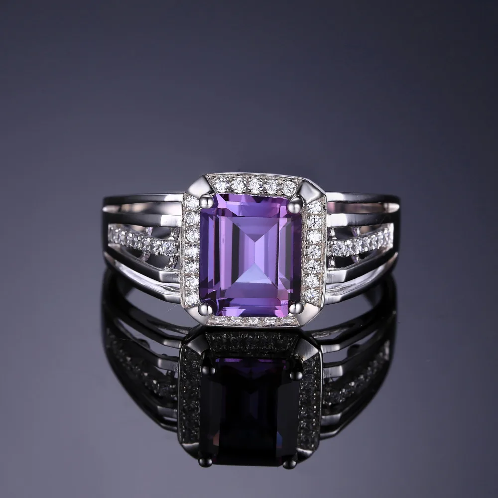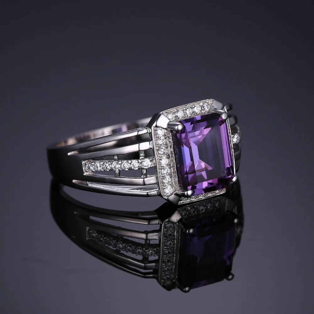 Authentic. Solid 925 Sterling Sliver Created Amethyst Cubic Zirconia Fine Jewelry for Men's Ring Size 7-8 SR011