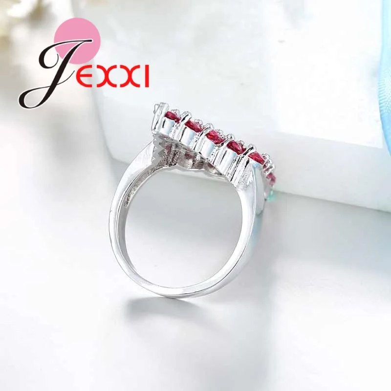 New Women 925 Sterling Silver Rings For Engagement Jewelry Original Design Red Cubic Zircon Wedding Bands Ring For Brides
