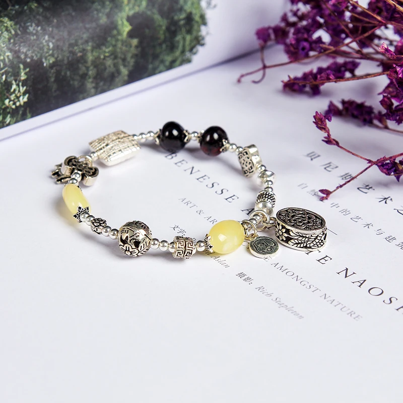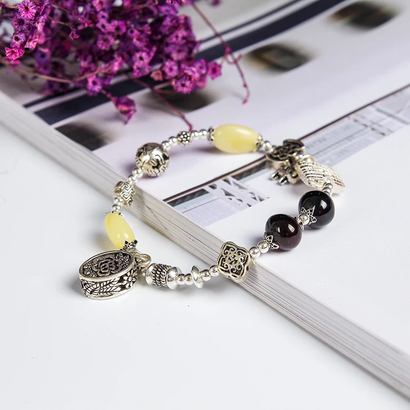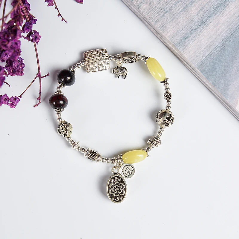 Natural amber hand string female chicken oil yellow beeswax with bracelet male white honey honey with beads with red blood
