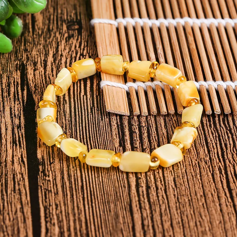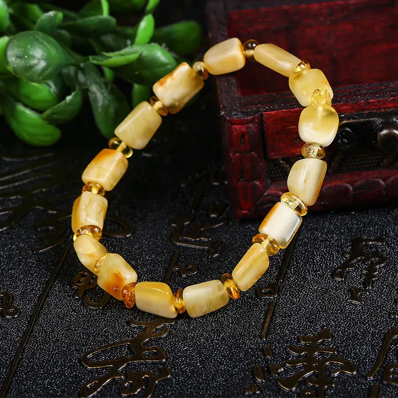 Unique super burst 100% Natural amber beeswax multi-treasure hand string bracelet lady genuine noble grade BT0035