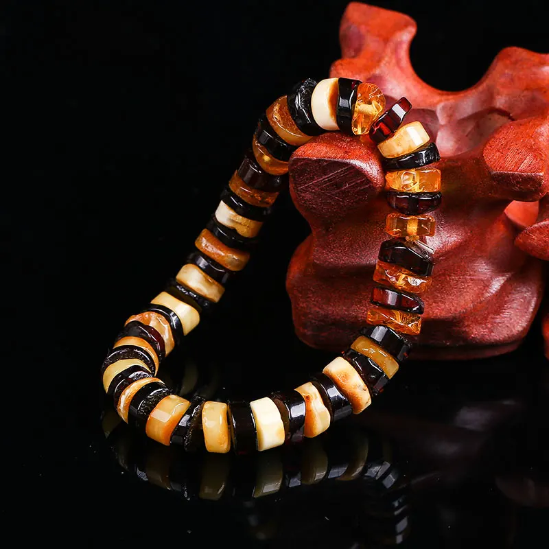 Unique super burst 100% Natural amber beeswax multi-treasure hand string bracelet lady genuine noble grade BT0030