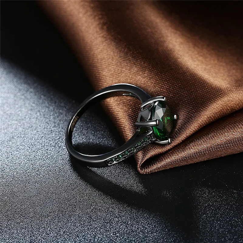 KJ-PR861-B, with green glass in black gun plated ring, fashion,invitations, lovely for Lady, Best for gift, Christmas, party