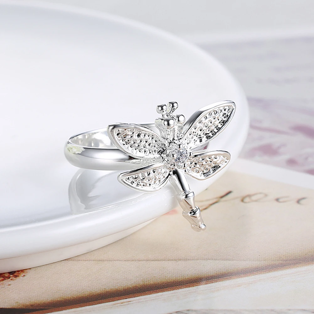 korean 925 Sterling Silver noble crystal beautiful Dragonfly Rings For Women wedding accessories Party Jewelry gifts
