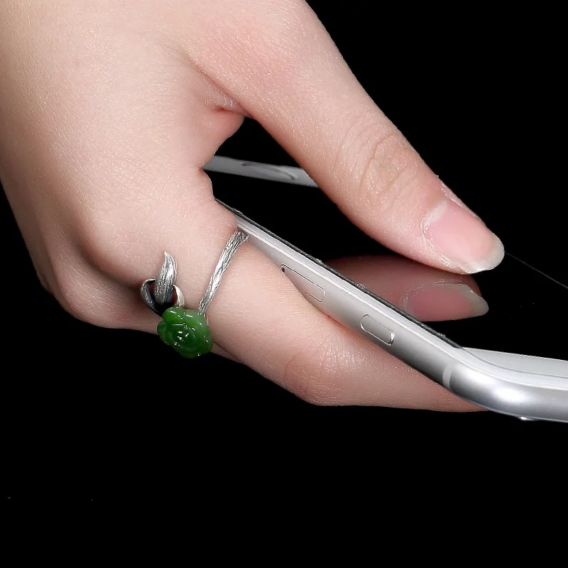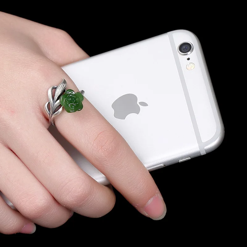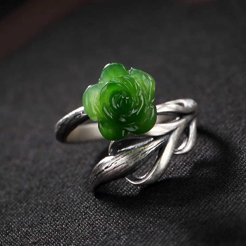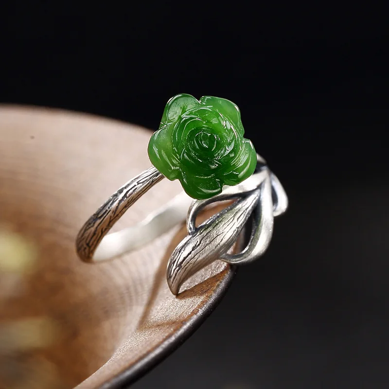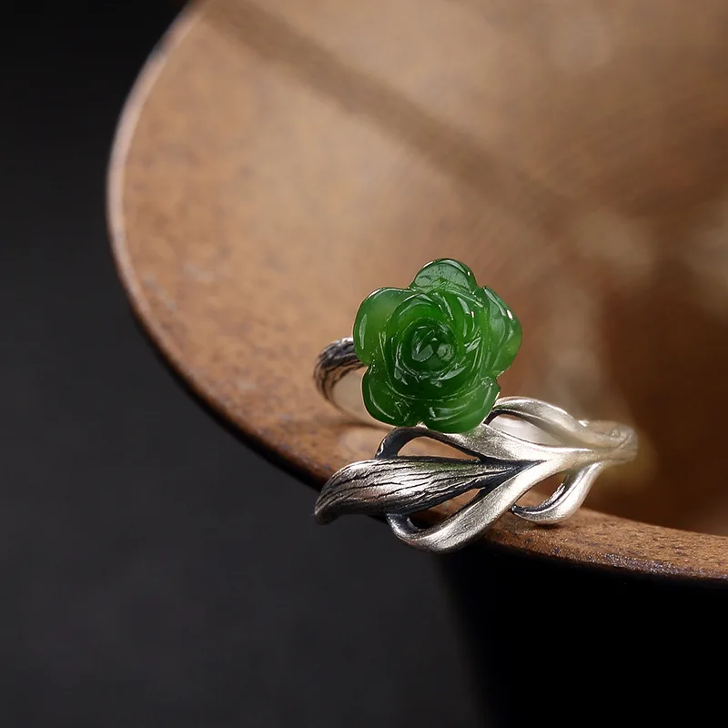S925 pure silver hetian jade jade lady rose Mosaic style restoring ancient ways ring ring