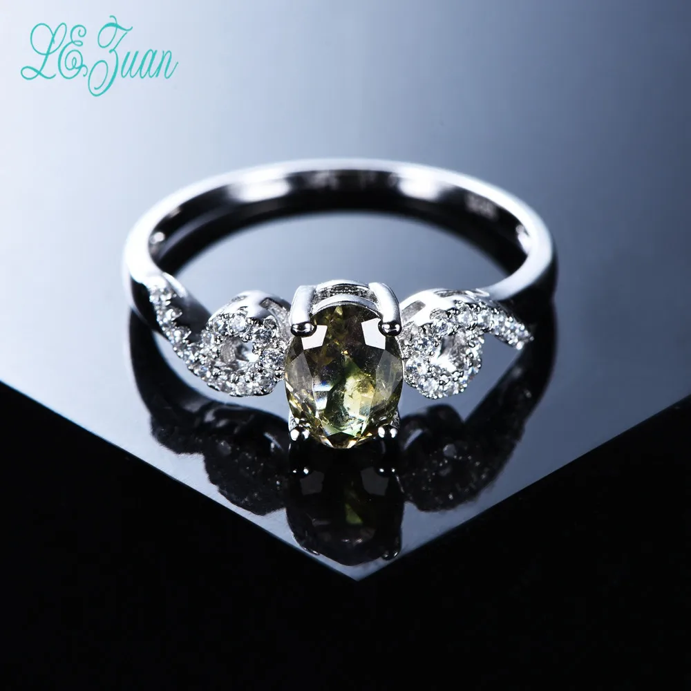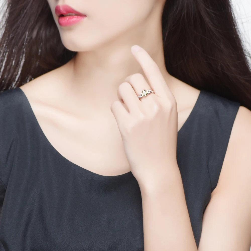 S925 Fine Sterling Silver Jewelry Oval-Shaped Natural Yellow-Green Tourmaline Rings For Women Party Christmas Gifts