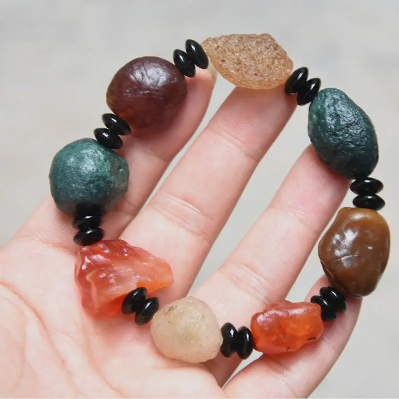 La Shan Gobi Natural Agate Rough Stone - Hand String Bracelet 22x18 MM