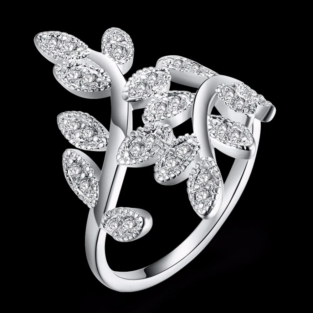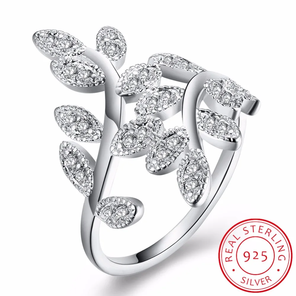 925 Sterling Silver Branch Tree Leaf Open Rings For Women Fashion Lady Prevent Allergy Sterling-silver-jewelry Anillos