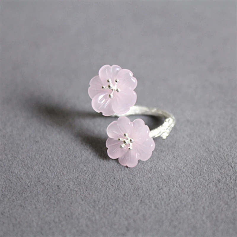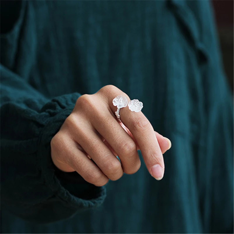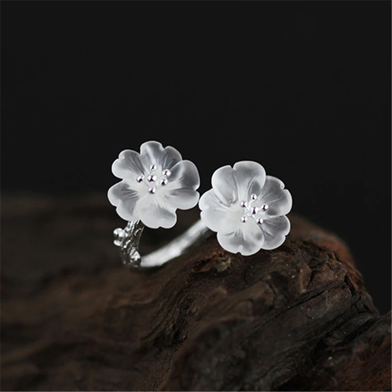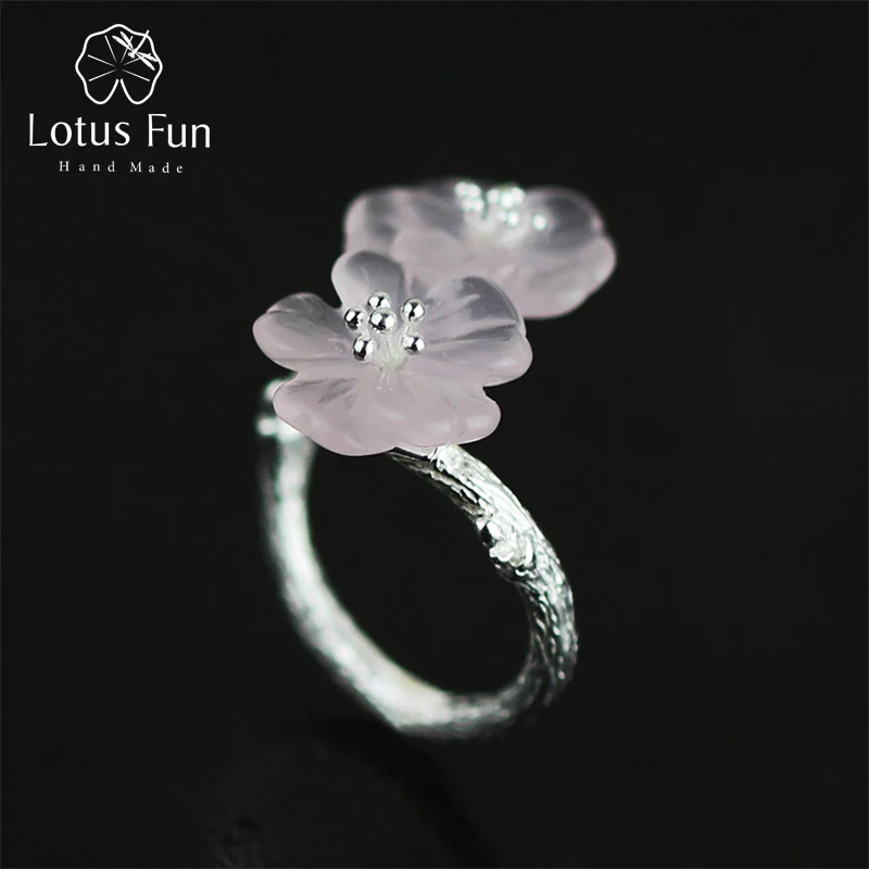 Real 925 Sterling Silver Natural Crystal Handmade Designer Fine Jewelry Flower in the Rain Rings for Women Bijoux