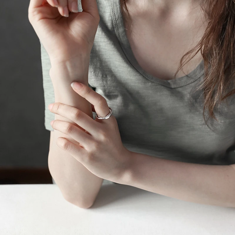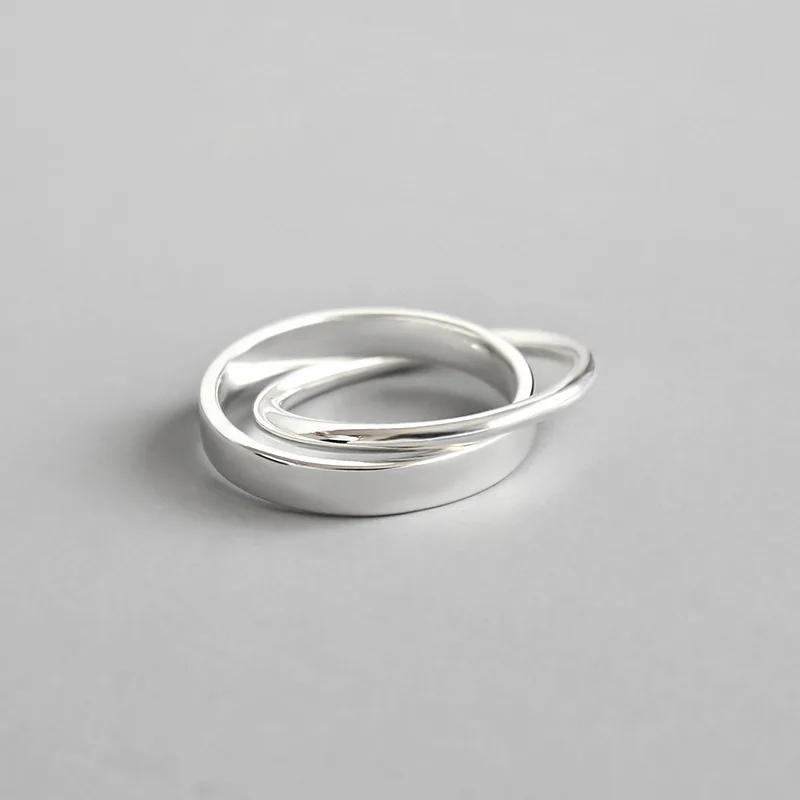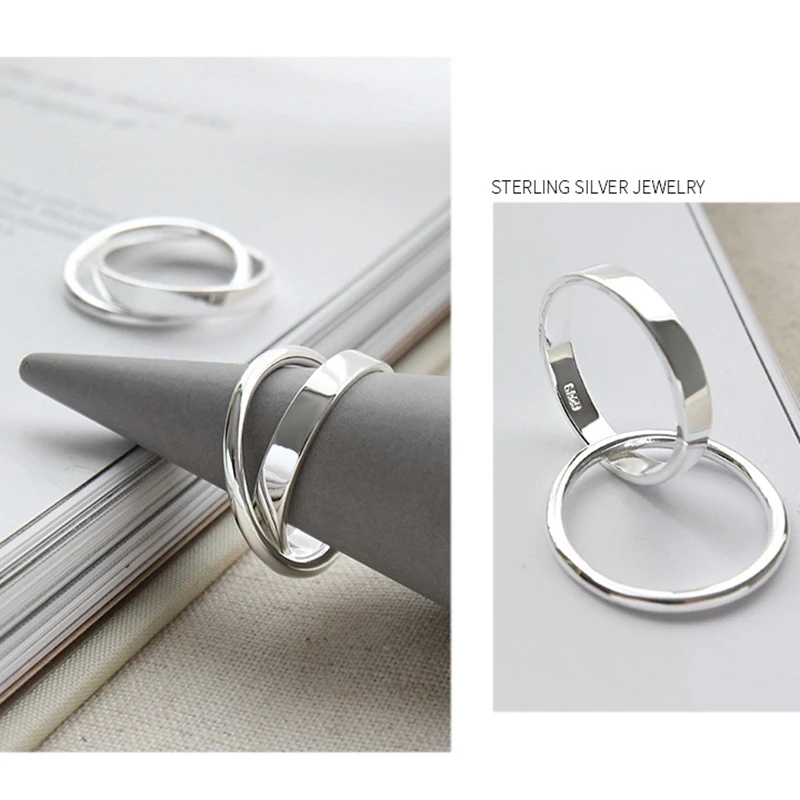 925 sterling silver double loop cross buckle rings silver simple INS style design rings for women creative jewelry gift