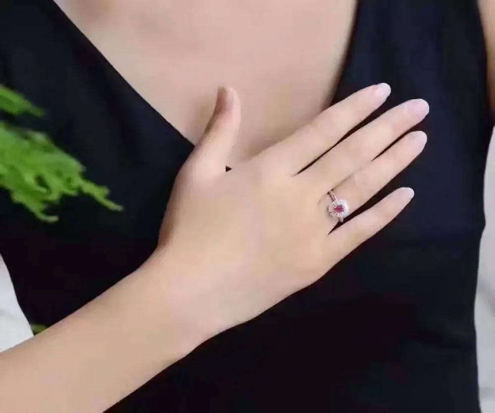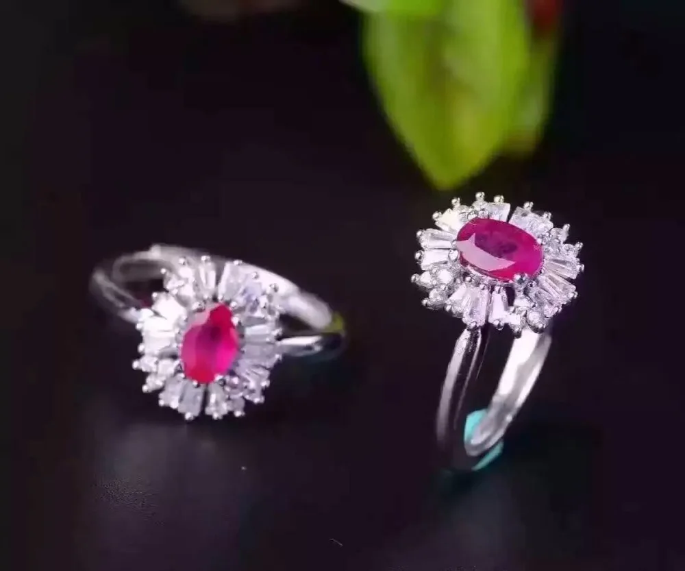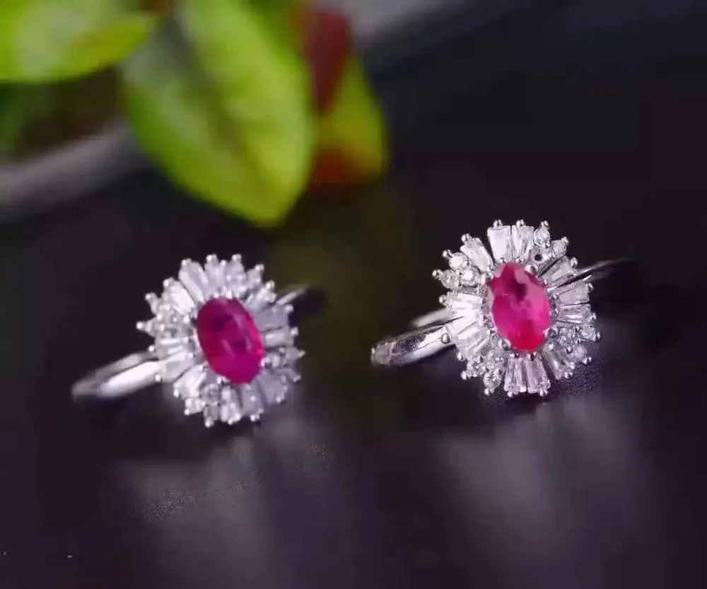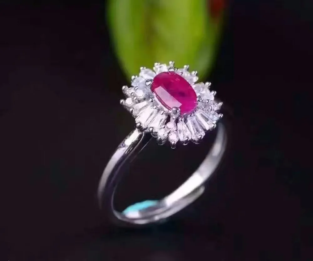 Luxurious silver ruby ring 4mm*6mm 0.5 ct genuine Burma ruby gemstone solid 925 silver romantic birthd gift for girlfriend