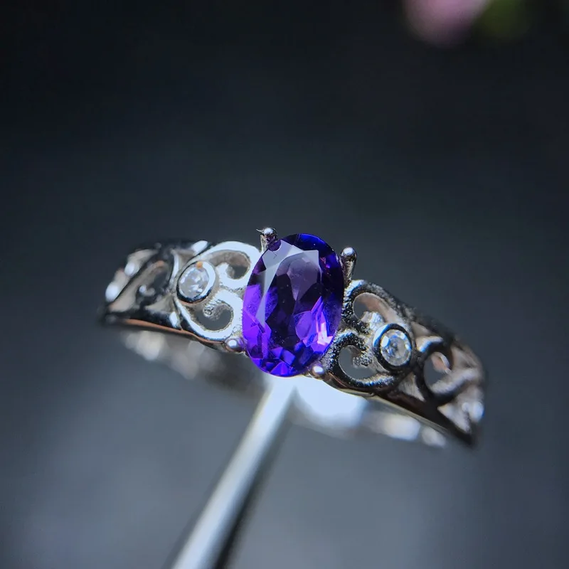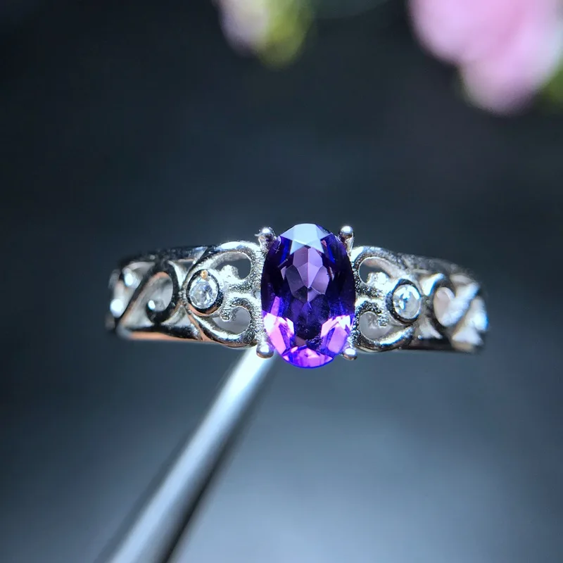 Natural Amethyst Gemstone Fashion Ring for Women Real 925 Sterling Silver Fine Jewelry