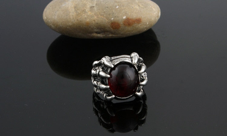 Men's Fashion Heavy Alloy Red Black Stone Skull Skeleton Dragon Claw Finger Ring Punk Biker Gothic Exaggerated Co Jewelry Gift