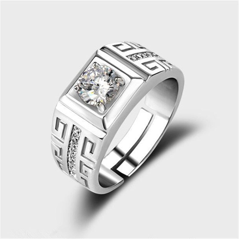 Men's Classic Retro Carved Inlaid Square AAA Zircon Open Style Ring Jewelry (Size: Adjustable ) R0267