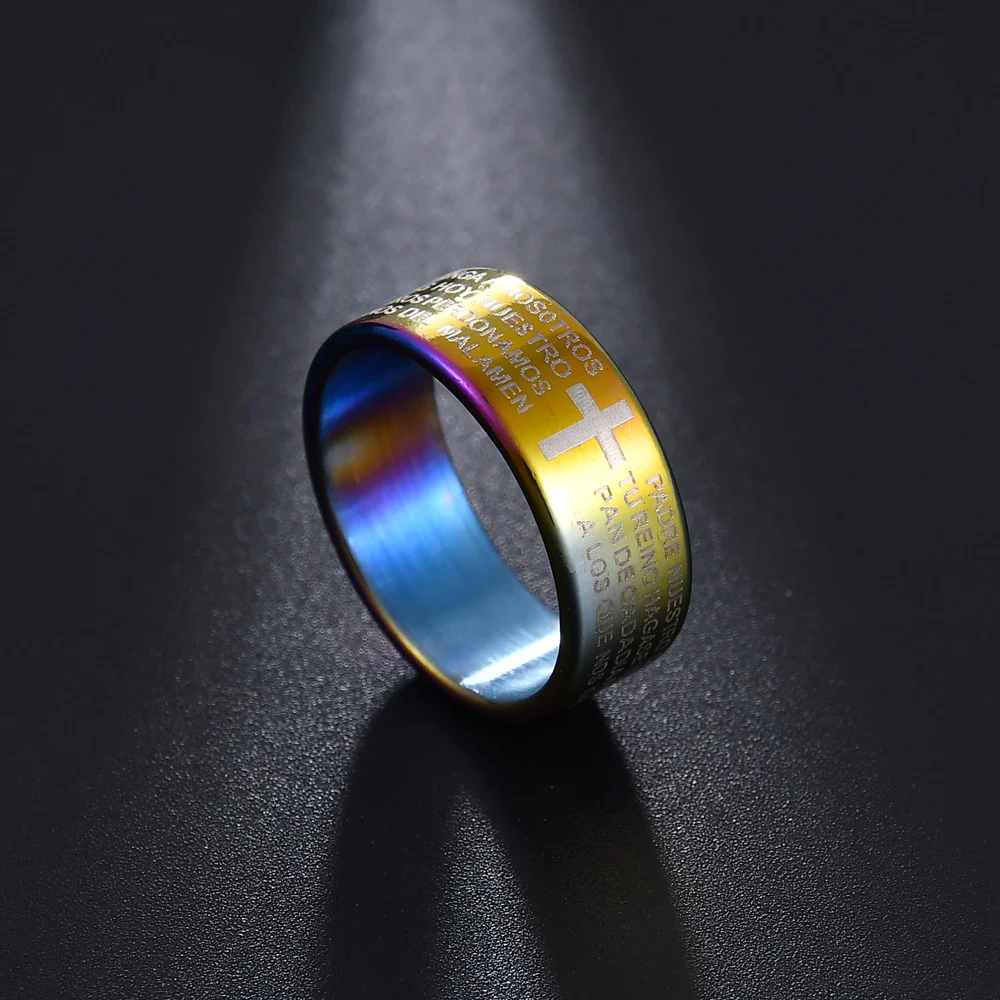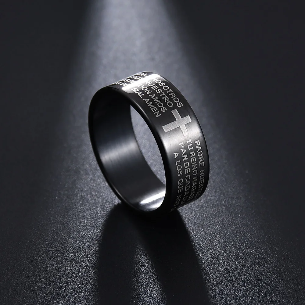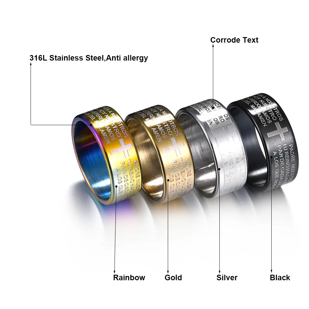 MMS Fashion 316L Stainless Steel rings for men and women Bible Lord's Prayer Cross Rings Punk Fashion Men Gift Jewelry Rings