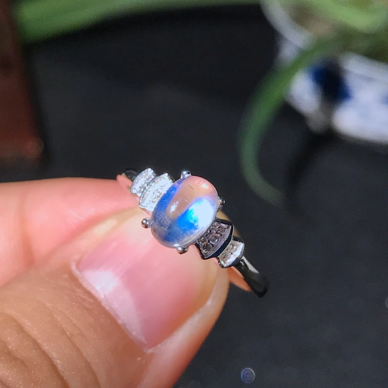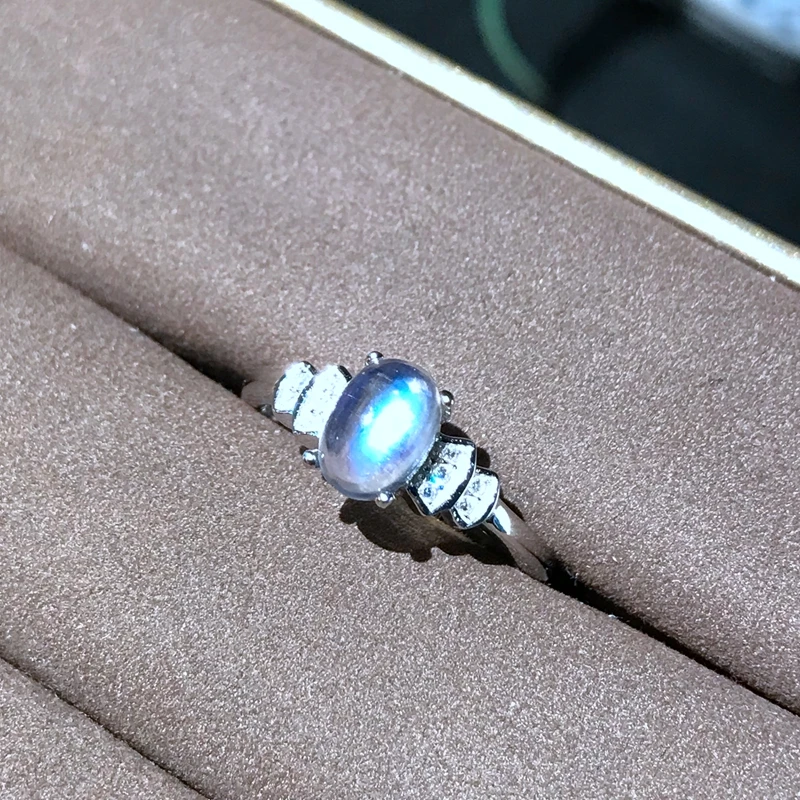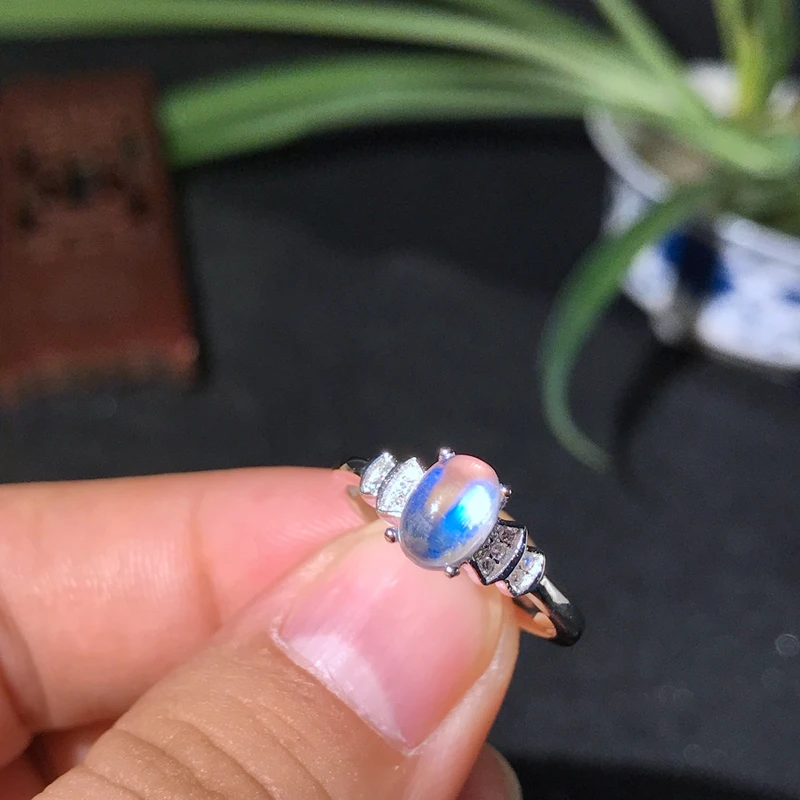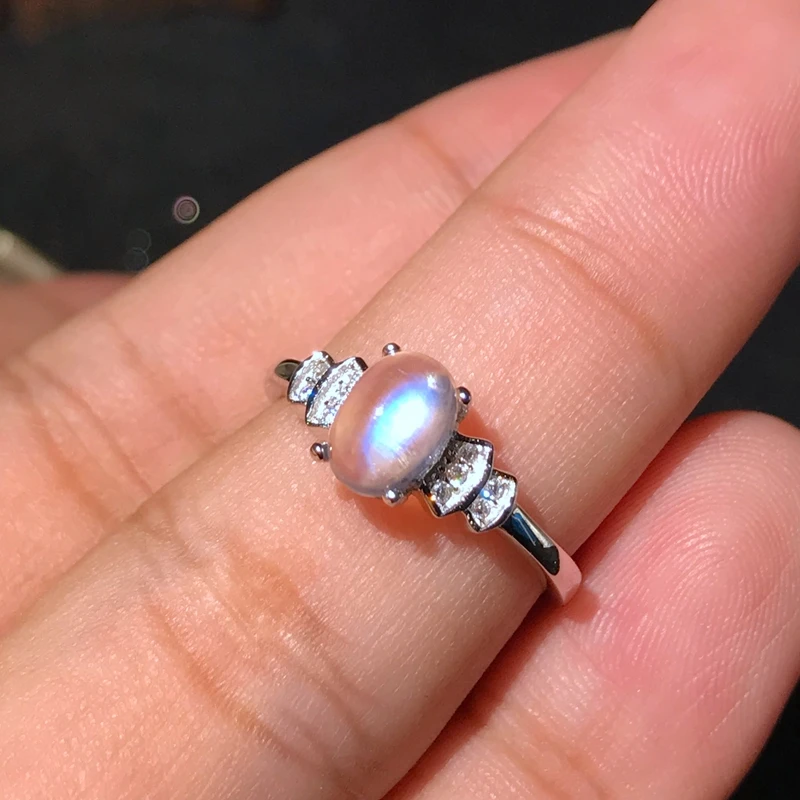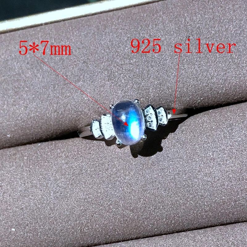 Moonstone Ring 925 silver crystal clean blue light intense simple lady ring