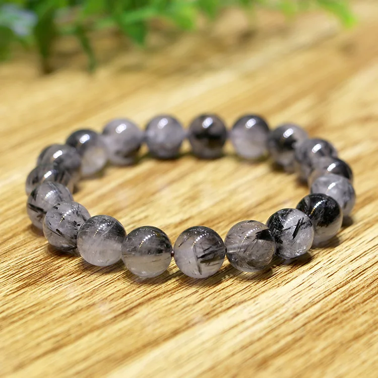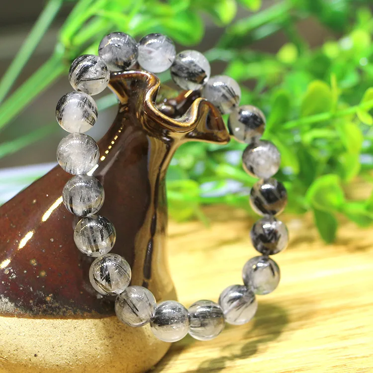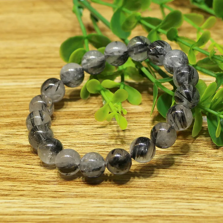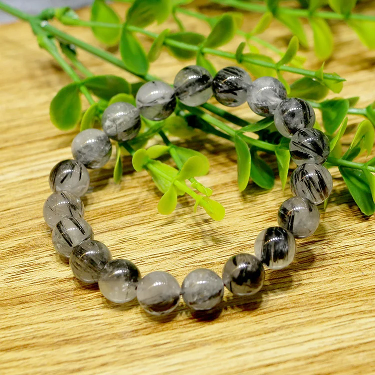 Natural Black Hair Crystal Bracelet Natural Black Tourmaline Quart-z Gem stones Hand String Men And Women Bracelet