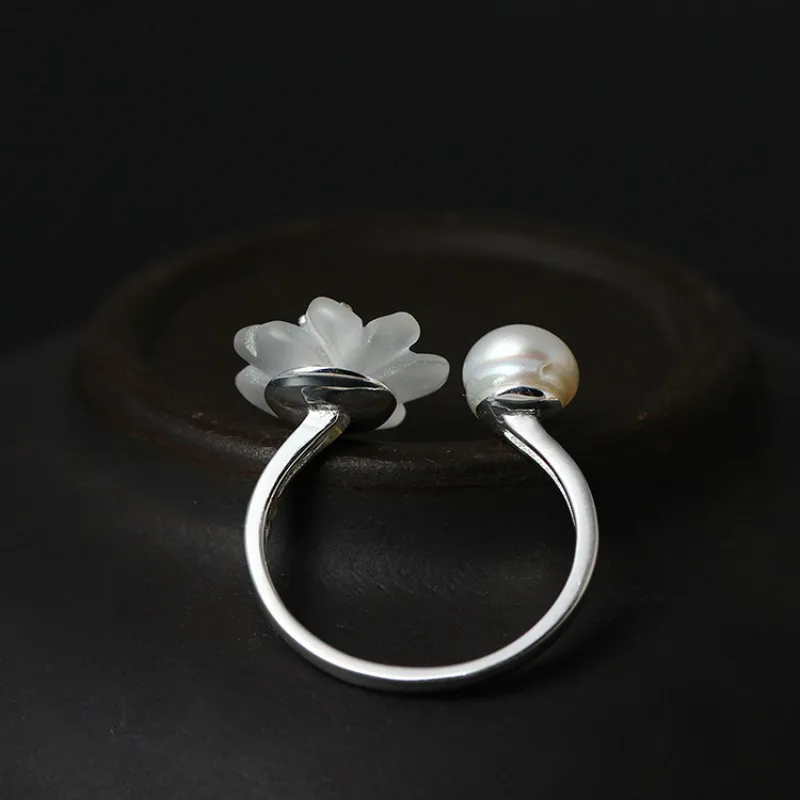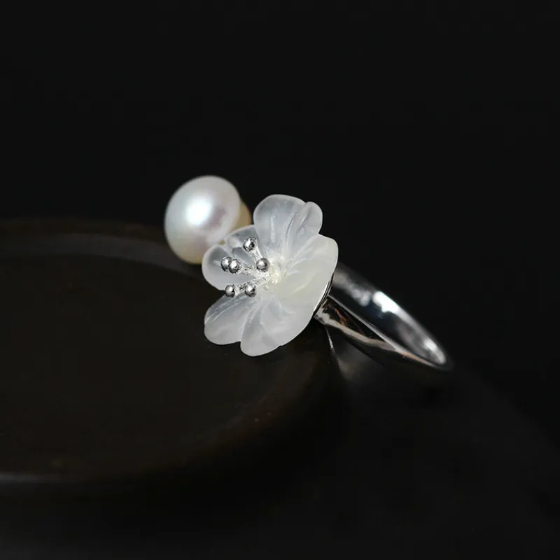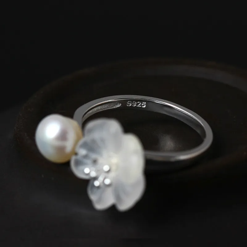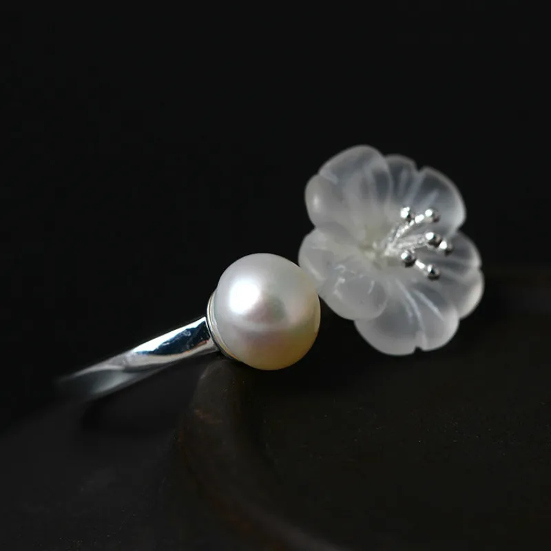 Natural Crystal Plum Blossom Ring 925 Pure Silver Female Rings with Pearl Opening Ring for Women Fine Jewelry
