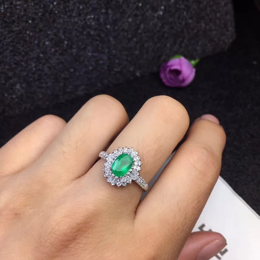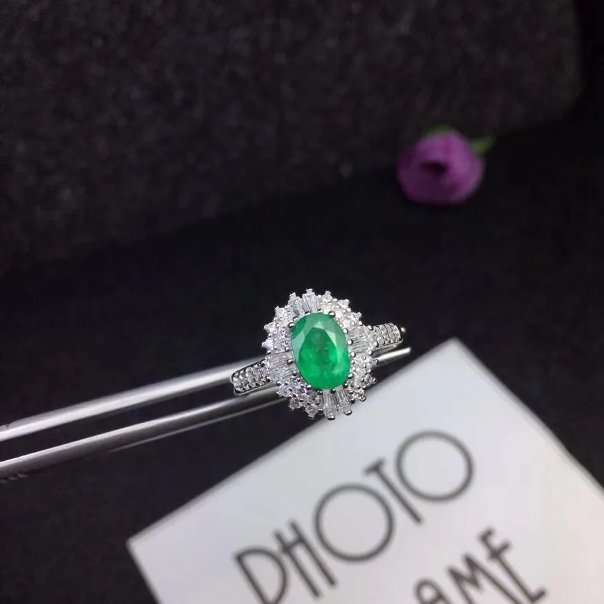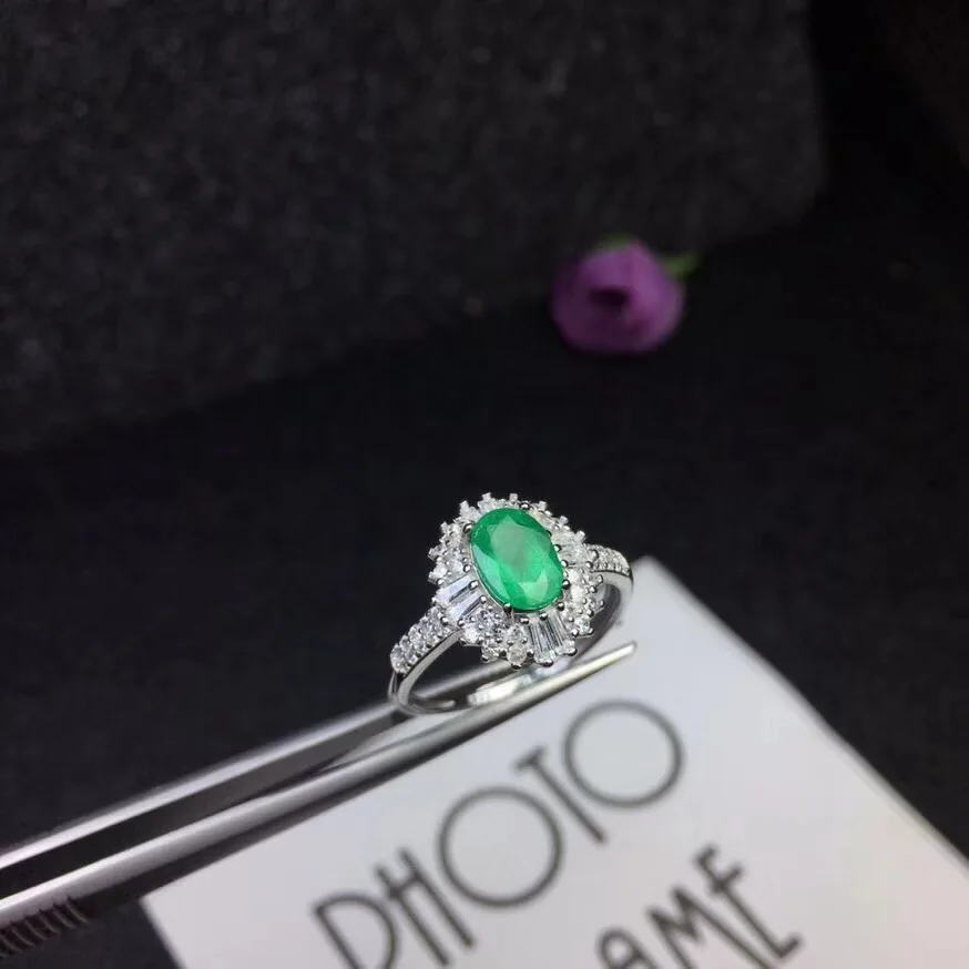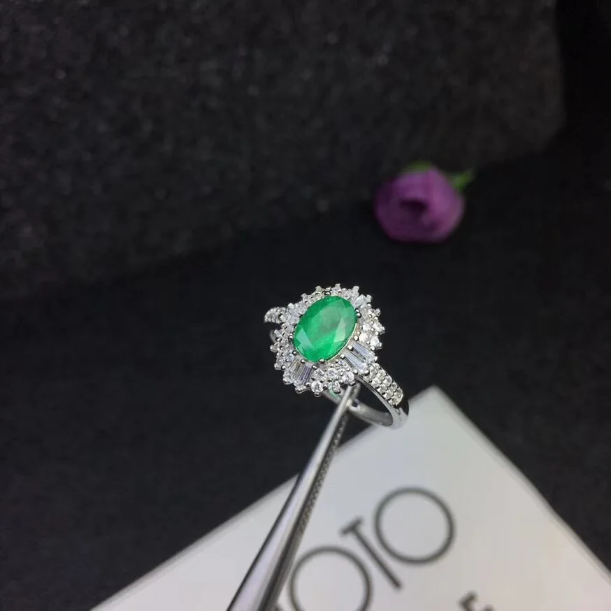 Natural emerald ring luxury style 5X7mm 925 silver Columbia origin 1ct