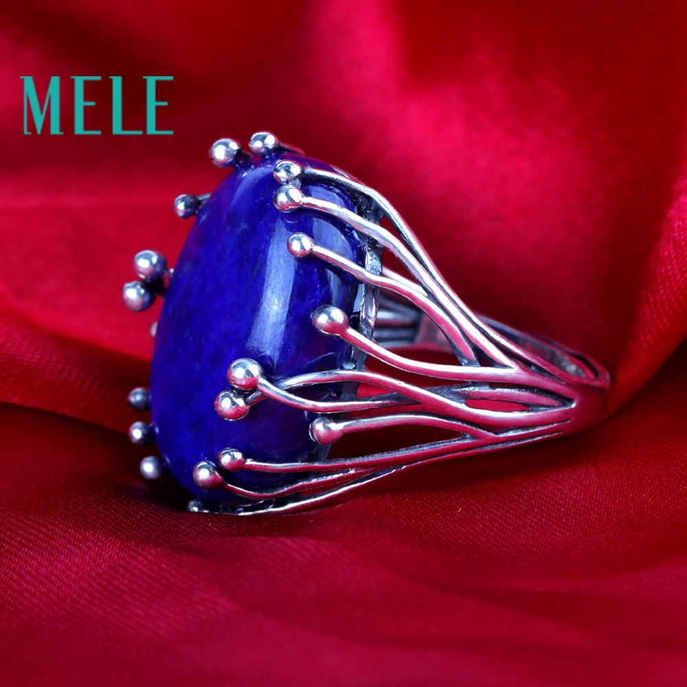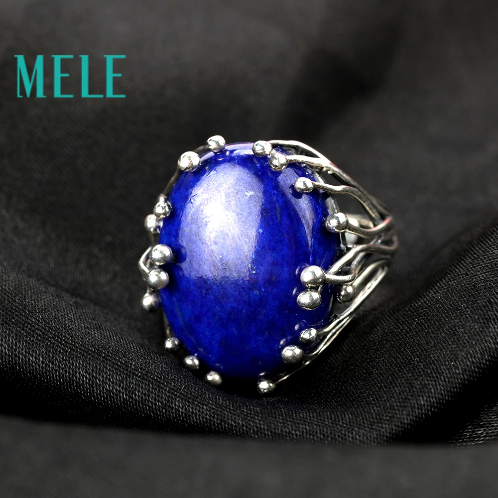 Natural lapis lazuli rings for women and man,15X20mm deep blue big oval cut,925 sterling silver gemstone fine jewelry