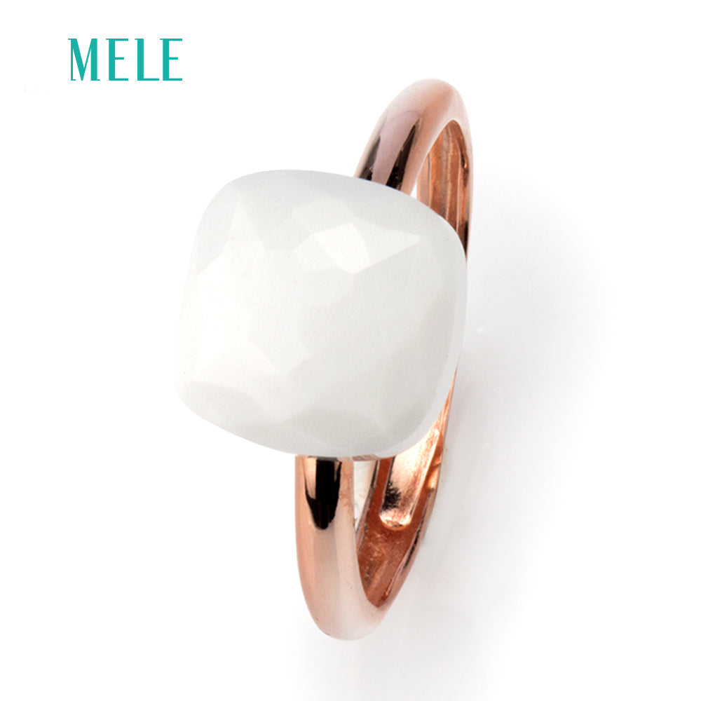 Natural white agate silver ring ,cushion 10mm*10mm, checkerboard cutting, top quality, fine jewelry for women