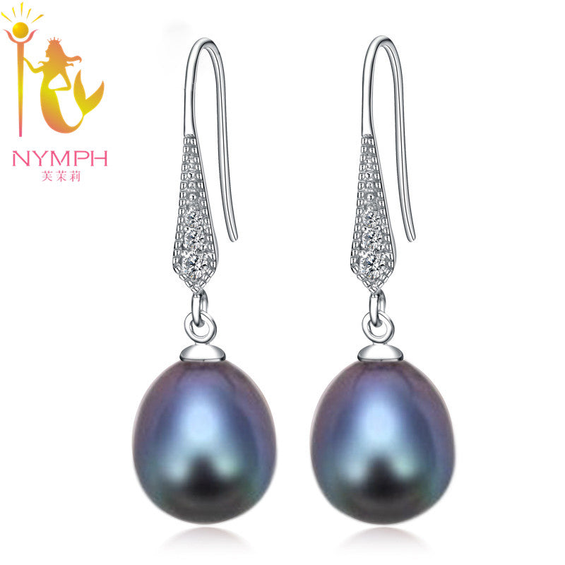 [NYMPH] pure natural pearl earrings,8-9mm drop pearl fine jewelry gift for women E10017