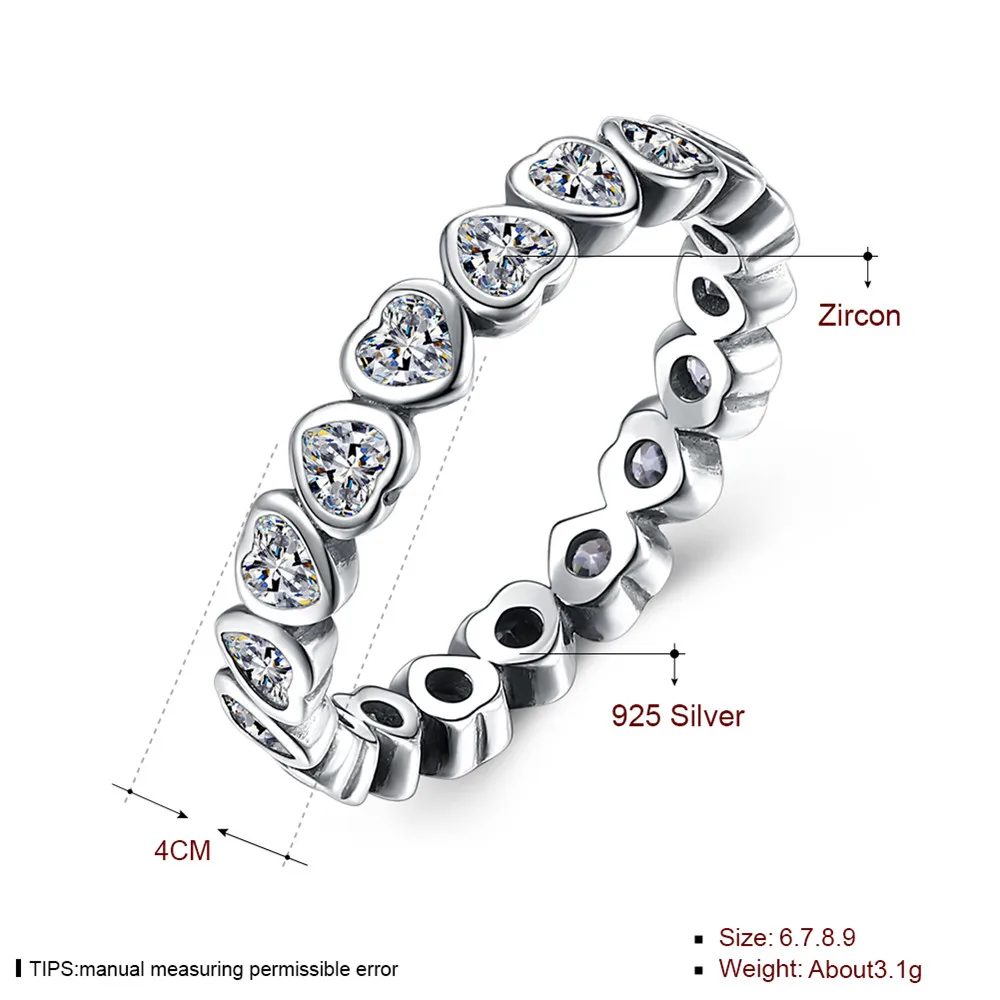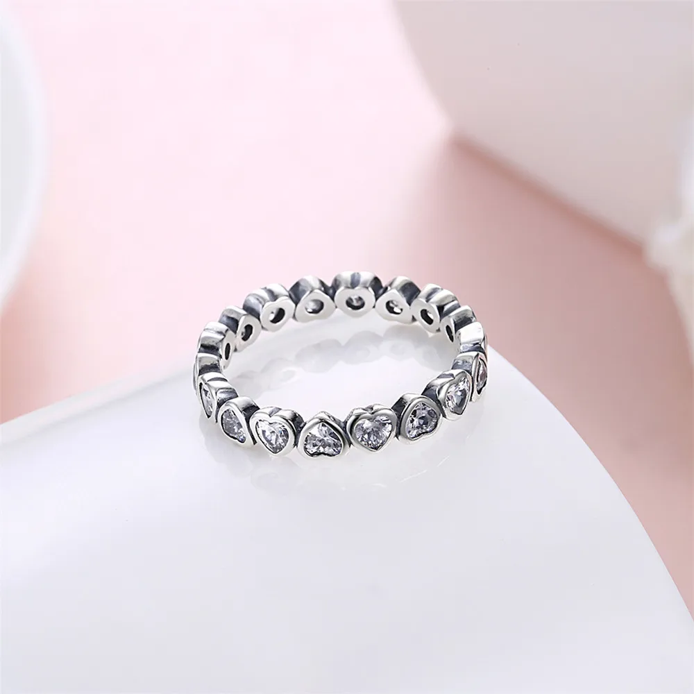 Rings Women Genuine 925 Sterling Silver Love Heart Forever Stackable Ring Clear CZ Fine Jewelry Christmas Presents YMR036