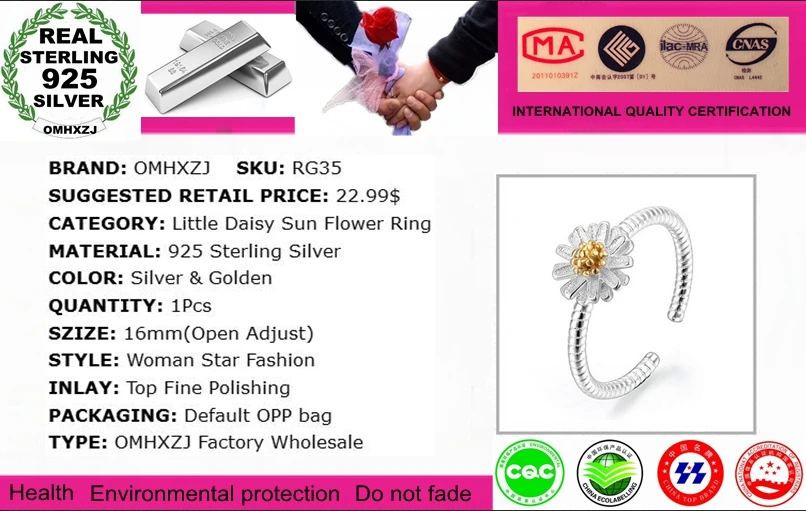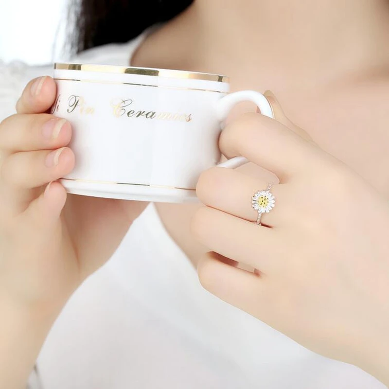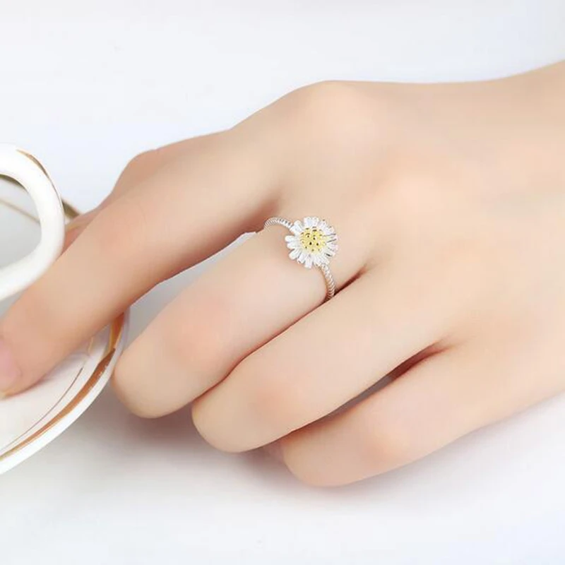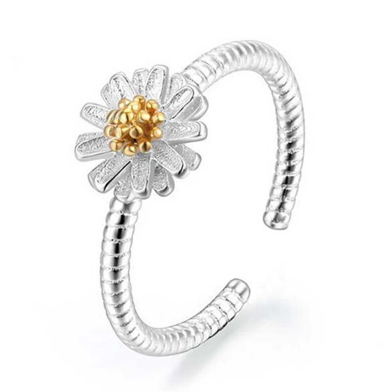 Wholesale Fashion joker Simple Little Daisy Sun Flower 925 Sterling Silver open adjust female for Woman Ring Gift RG35