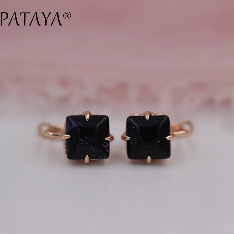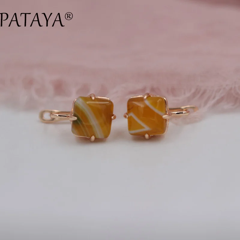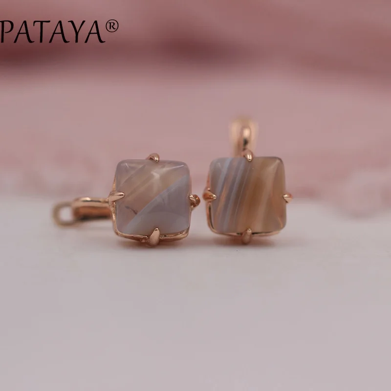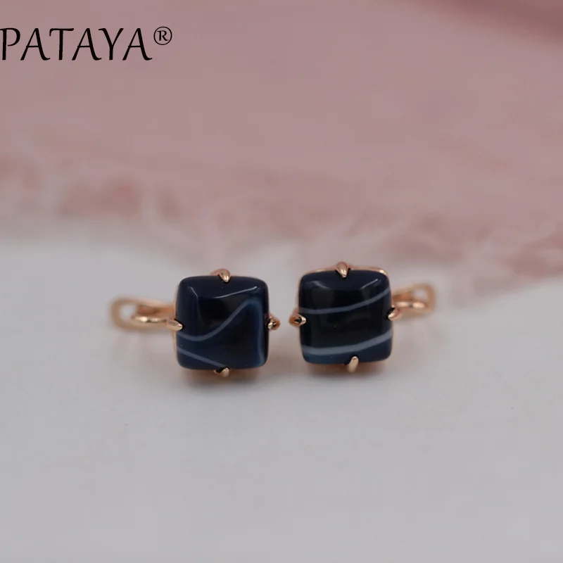 New Arrivals Square Stripe Onyx Natural Stone Earrings 585 Rose Gold Dangle Earring Women India Jewelry RU Hot Multicolor