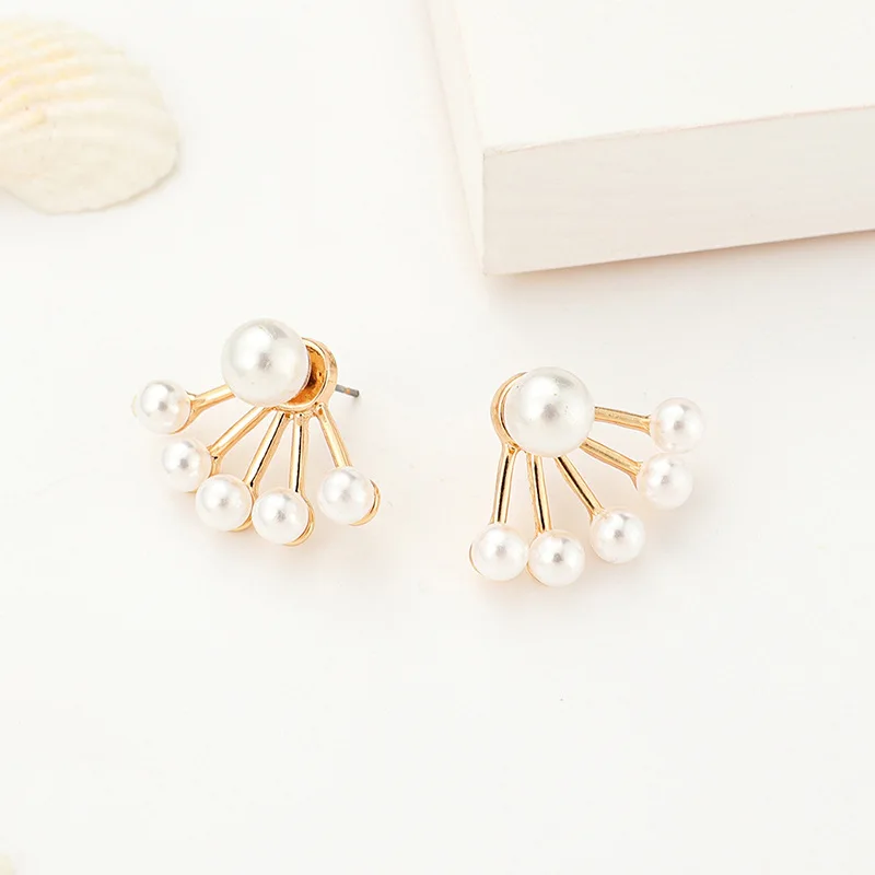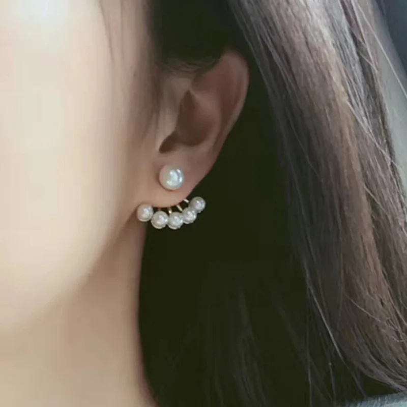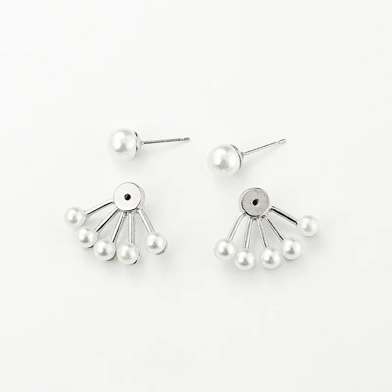 Pearl Stud Earrings Double-wearing Earrings 925 Sterling Silver Pin Sector Pearls Fine Jewelry Women's Trendy Fashion