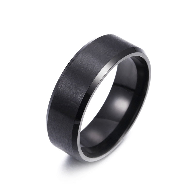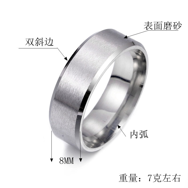 Popular Charm 8mm Matte Stainless Steel Men's Ring Simple Jewelry Black Blue Gold