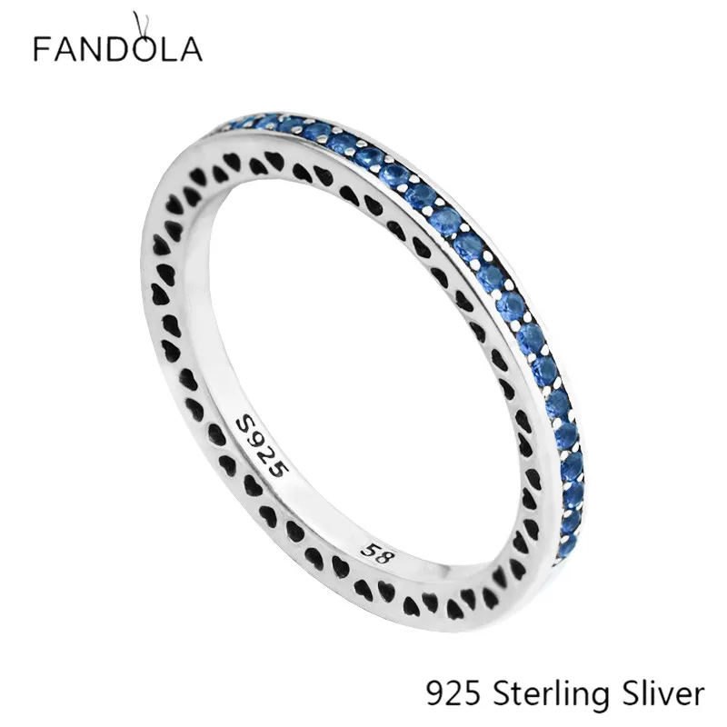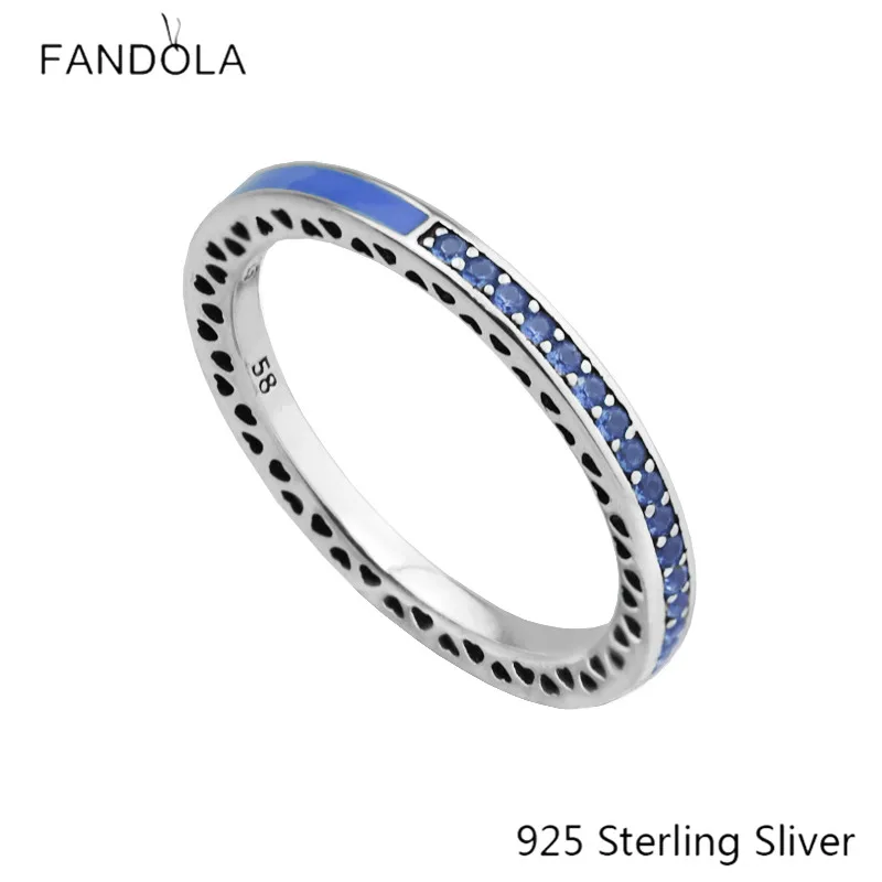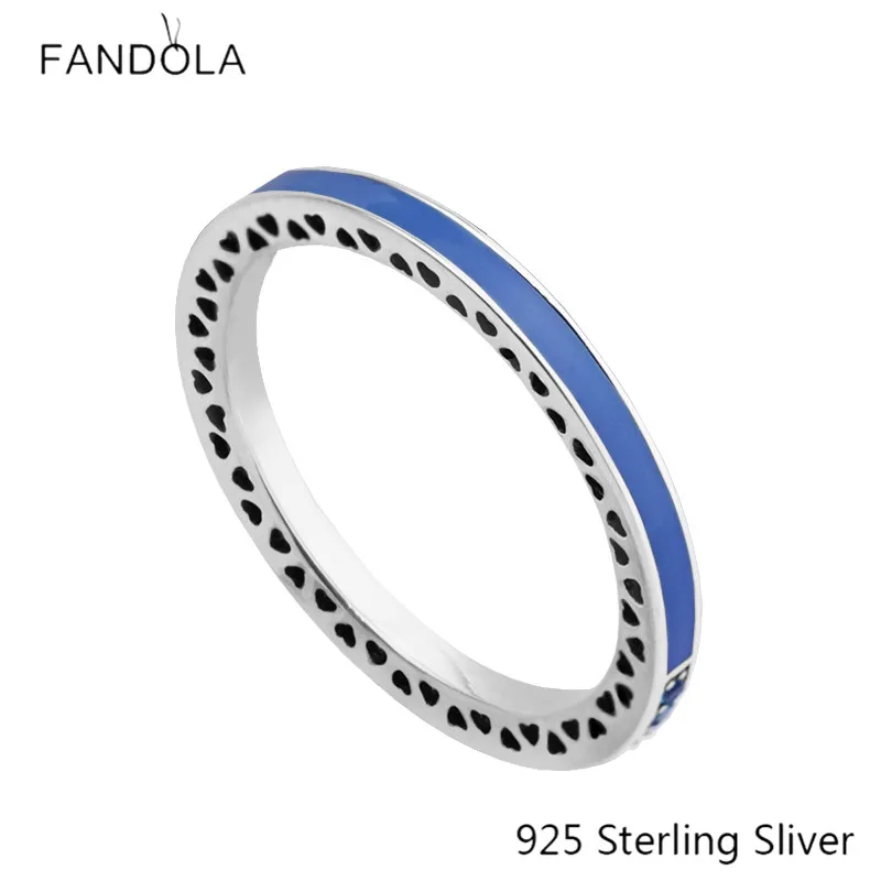 Princess Blue Enamel Rings Openwork Hearts 925 Sterling Silver Radiant Ro Blue For Women Jewelry Ring