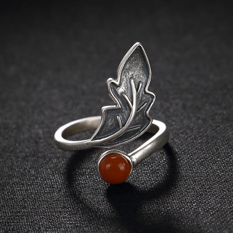Pure Silver Restoring Ancient Ways Do Old Matte Mosaic South Red Agate Ring Ring Wholesale Female Personality Openings