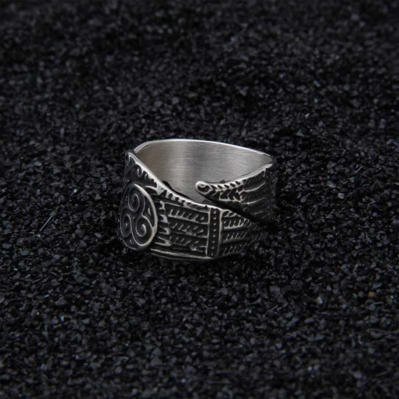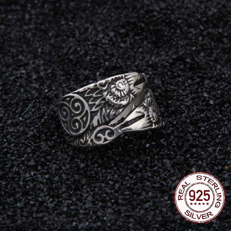 Real 925 Sterling Silver Viking Raven Rune Ring Adjustable with Viking box