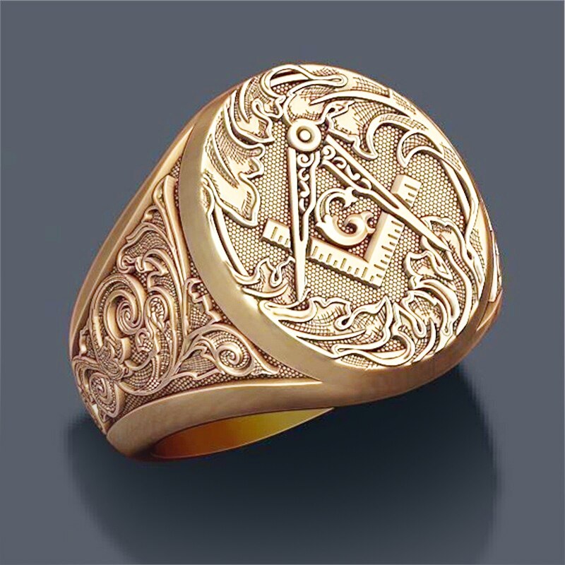 Retro Letter Ag Freemason Pattern Ring Men's Ring Metal Golden Freemason Ring Accessories Party Jewelry Size 7-12