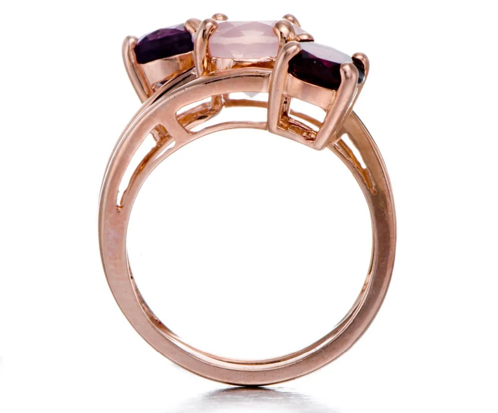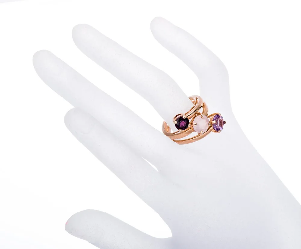 Hutang Solid 925 Sterling Silver Ring Rose Quartz, Amethyst, Garnet Gemstone Fine Jewelry