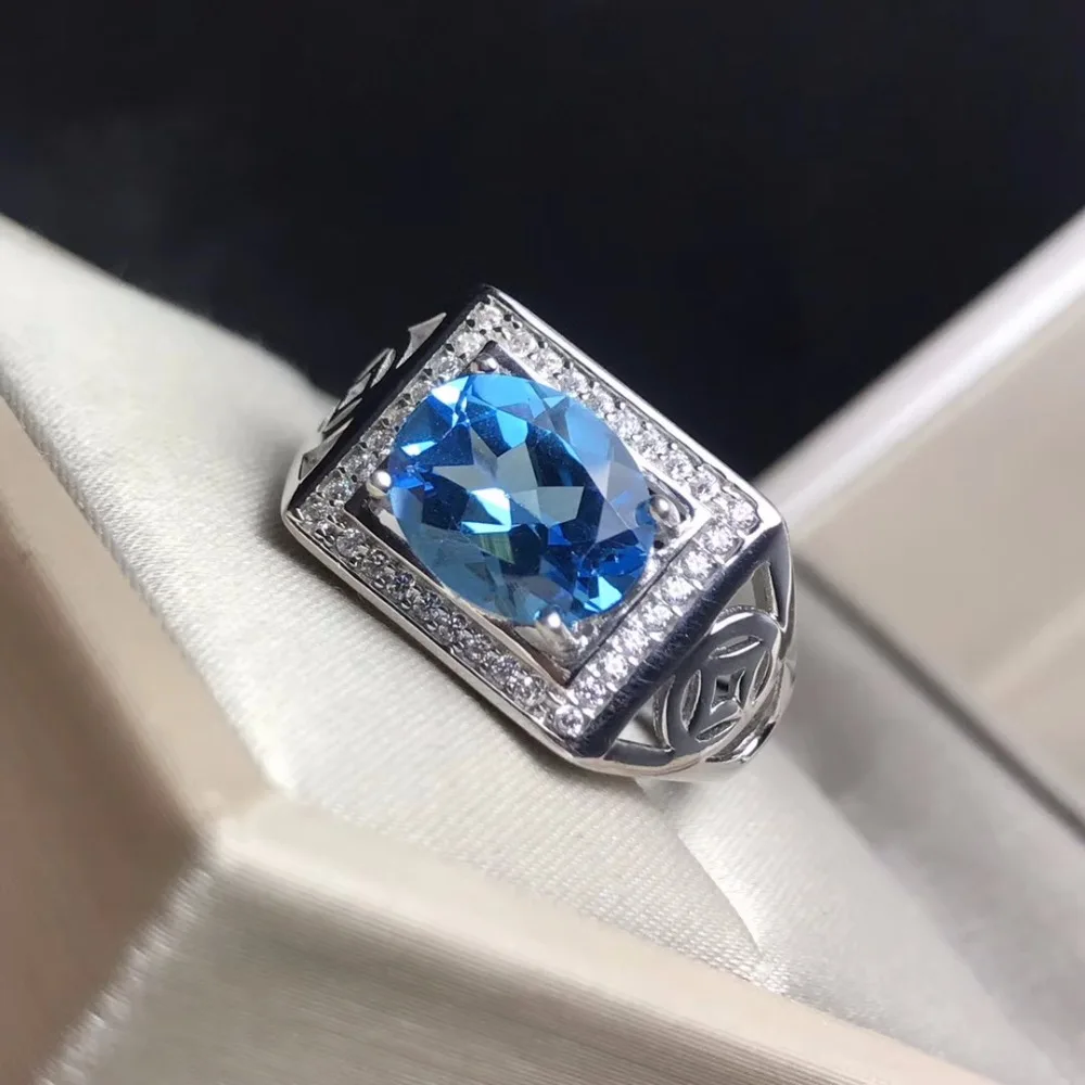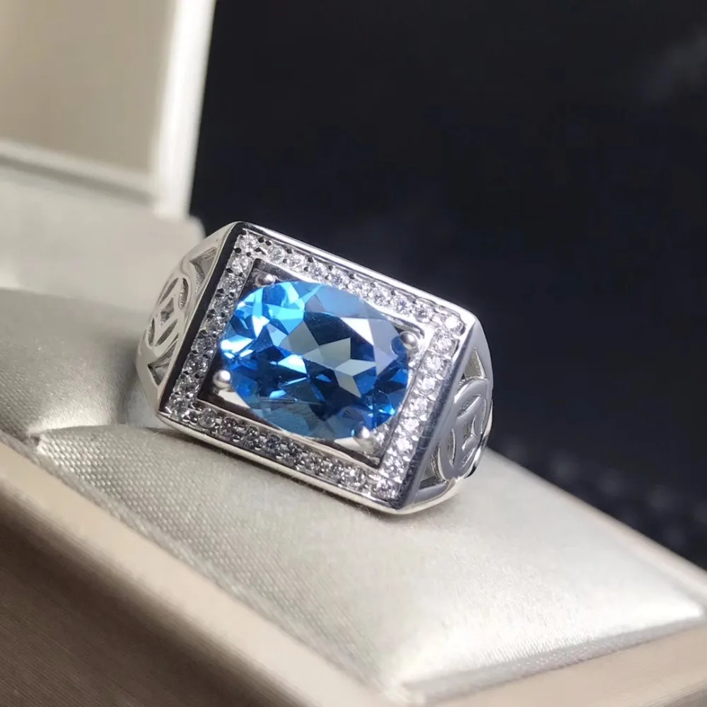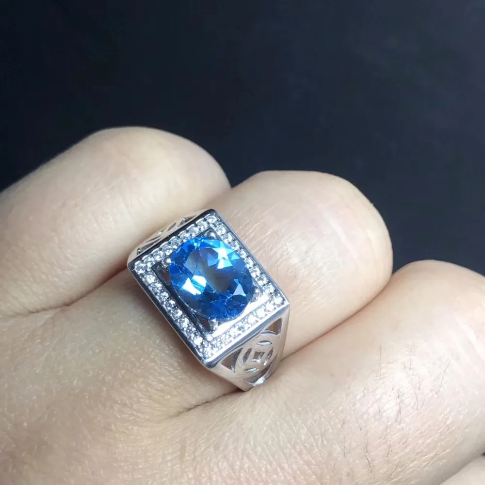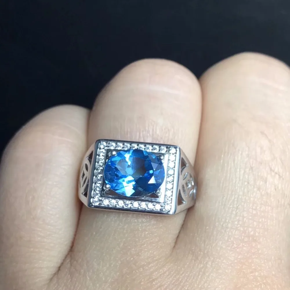 Ro Blue Topaz men's RING 925 silver customized ring size new recommended simple ring