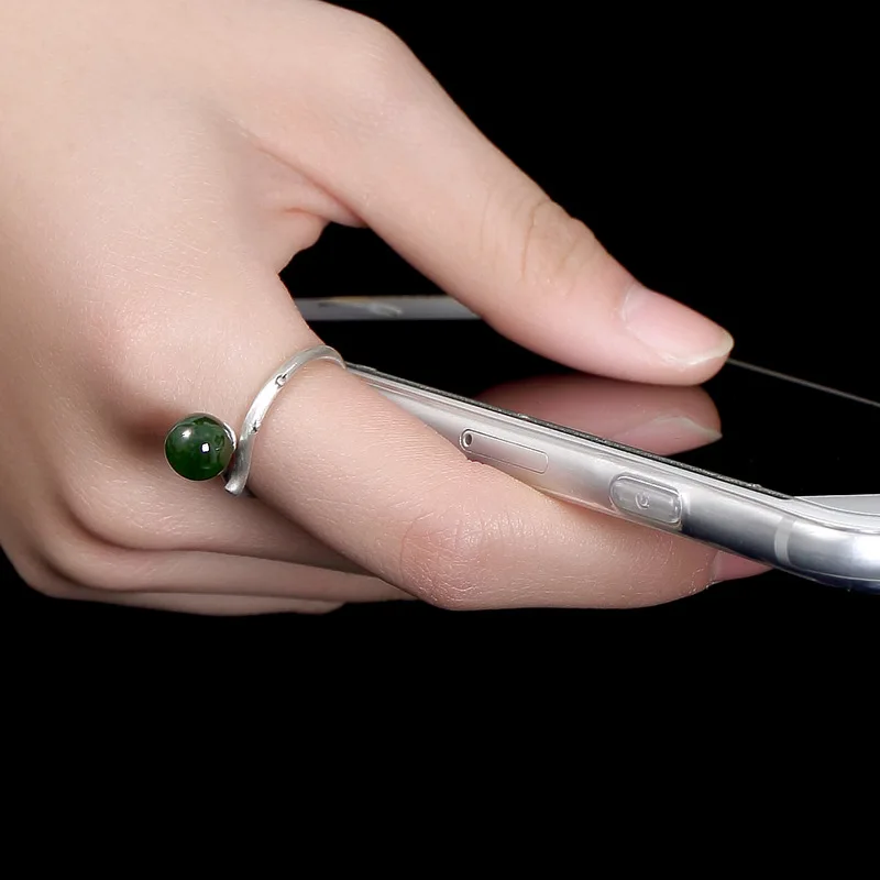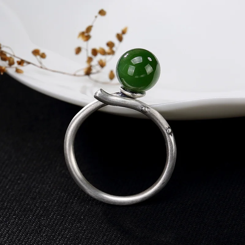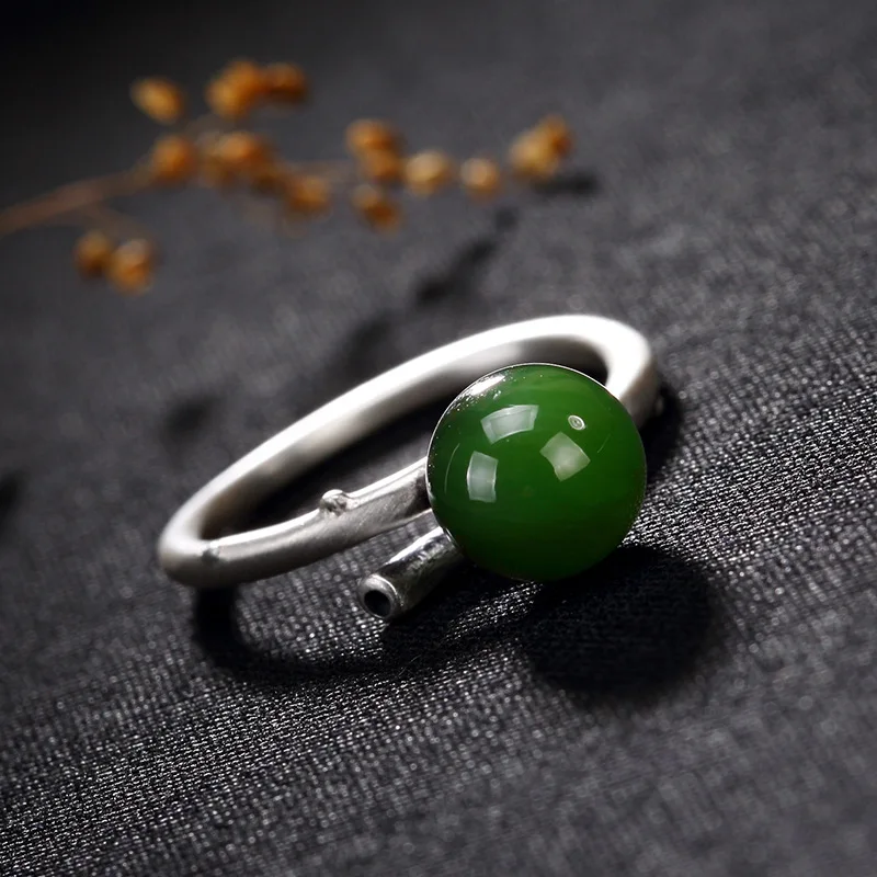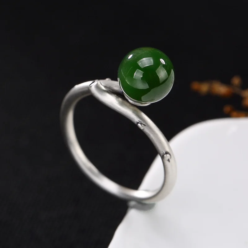 S925 pure silver inl hetian jade jade restoring ancient ways round pearl ring ring high-grade openings