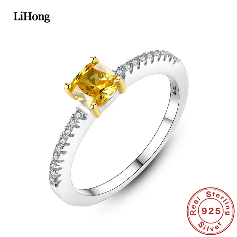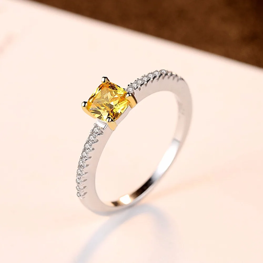S925 Silver Ring Natural Citrine Luxury Woman Ring Jewelry Engagement Wedding Gift