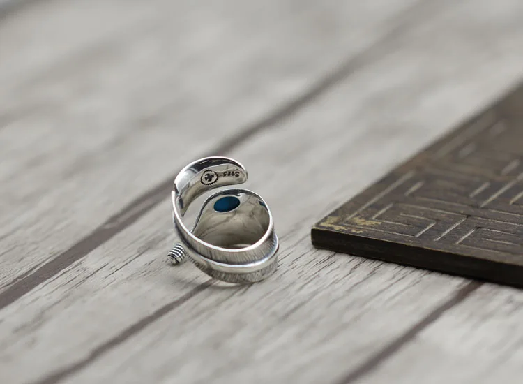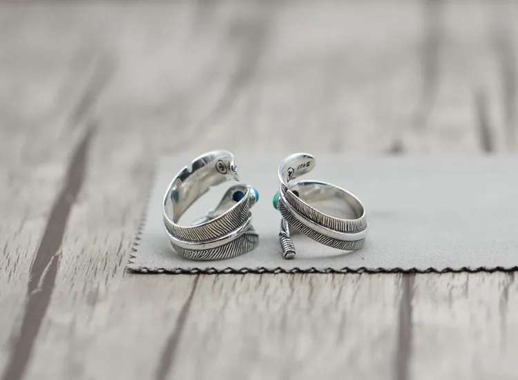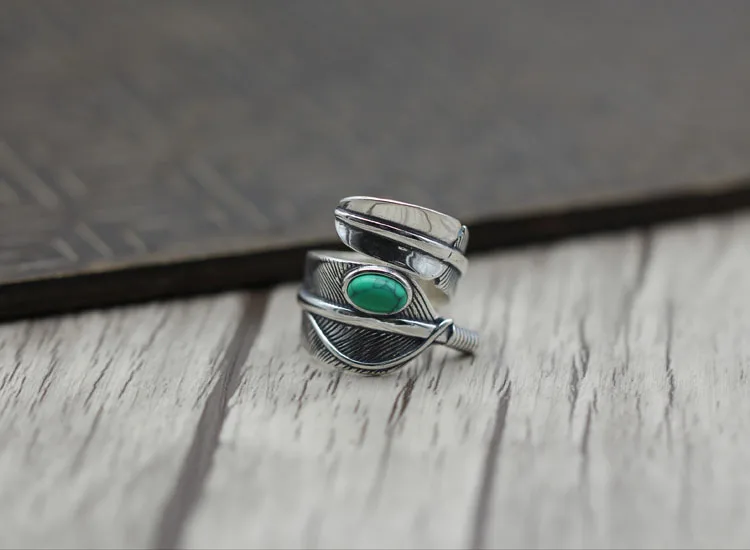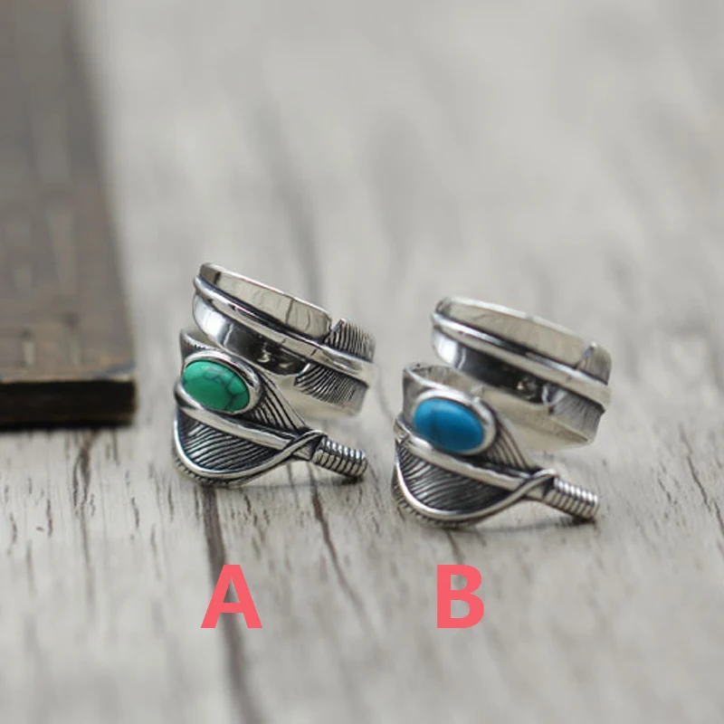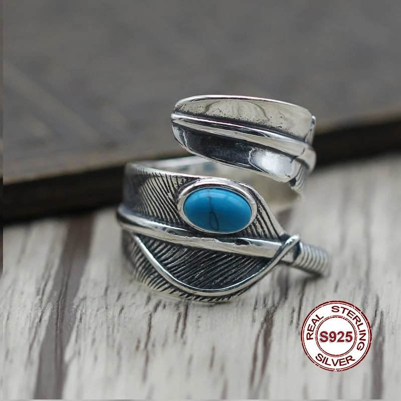 S925 Sterling Silver Ring in Popular classic style Feather series trendy jewelry Inlaid turquoise gift of love Indian style