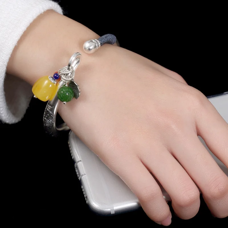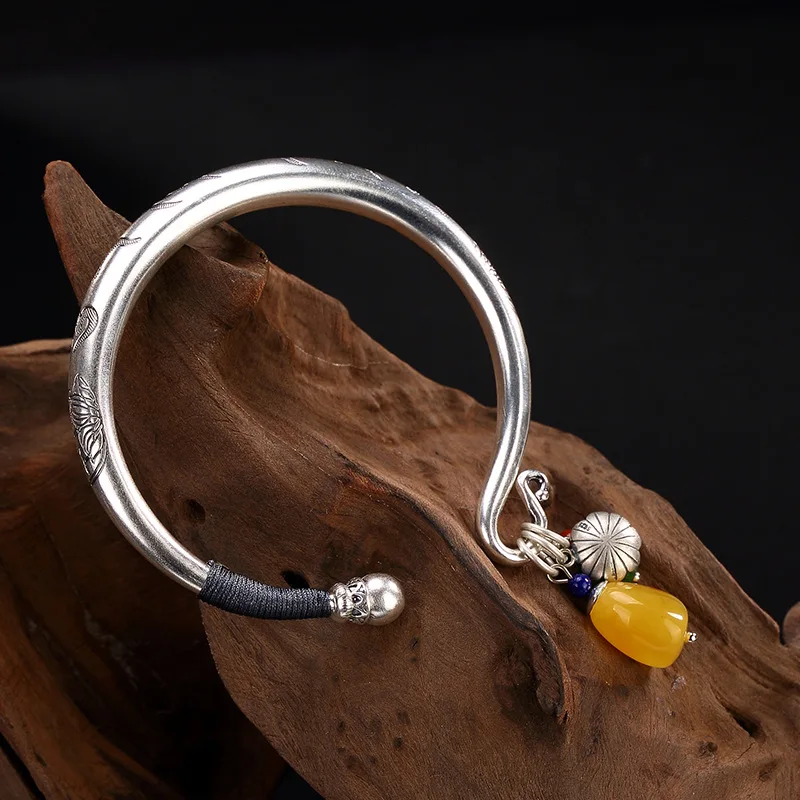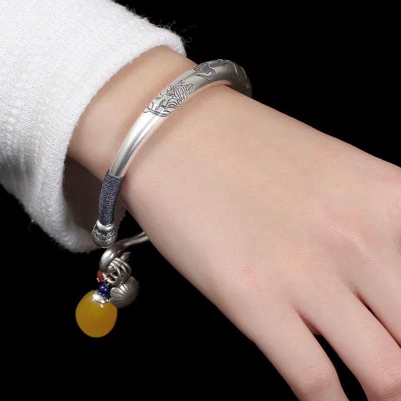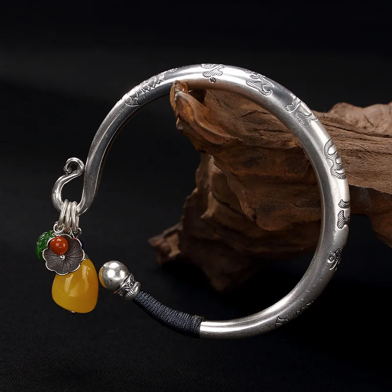 S999 Fine Silver Restoring Ancient Ways Is Six Words Ms Lotus Hetian Jade Jade Beeswax South Red Bracelet Wholesale