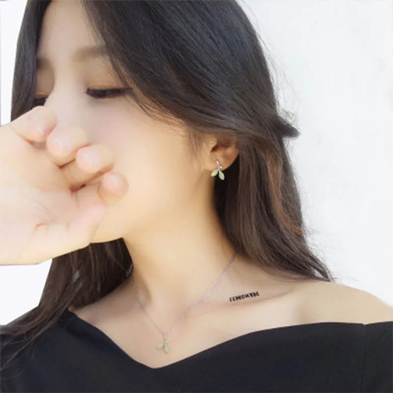 SHANICE Small Fresh 100% Real Pure 925 Sterling Silver Leave Stud Earrings Fashion Statement Co Jewelry for Women Charms Gift