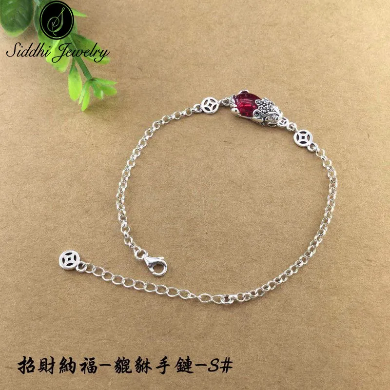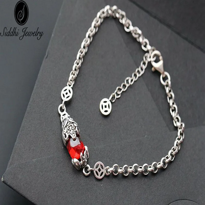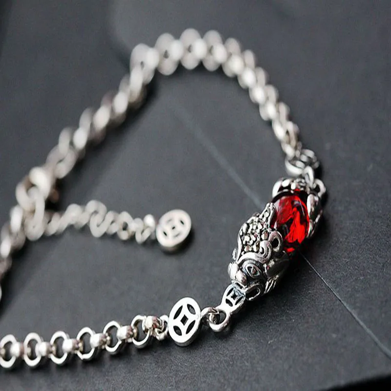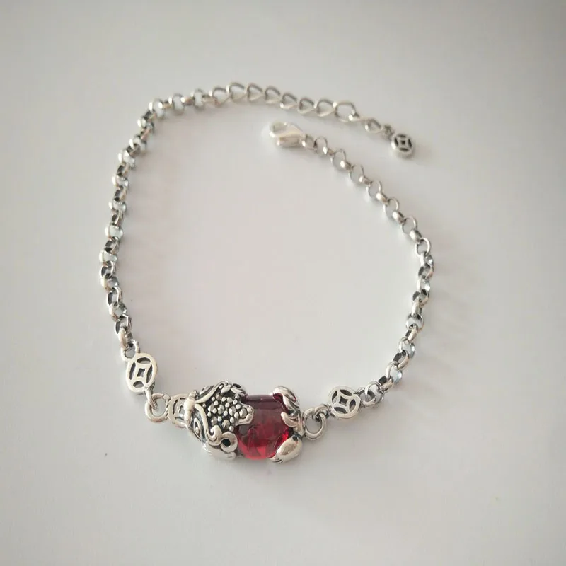 S925 Sterling Silver Garnet Bracelet features national wind hand string to attract money and ward off evil spirits.