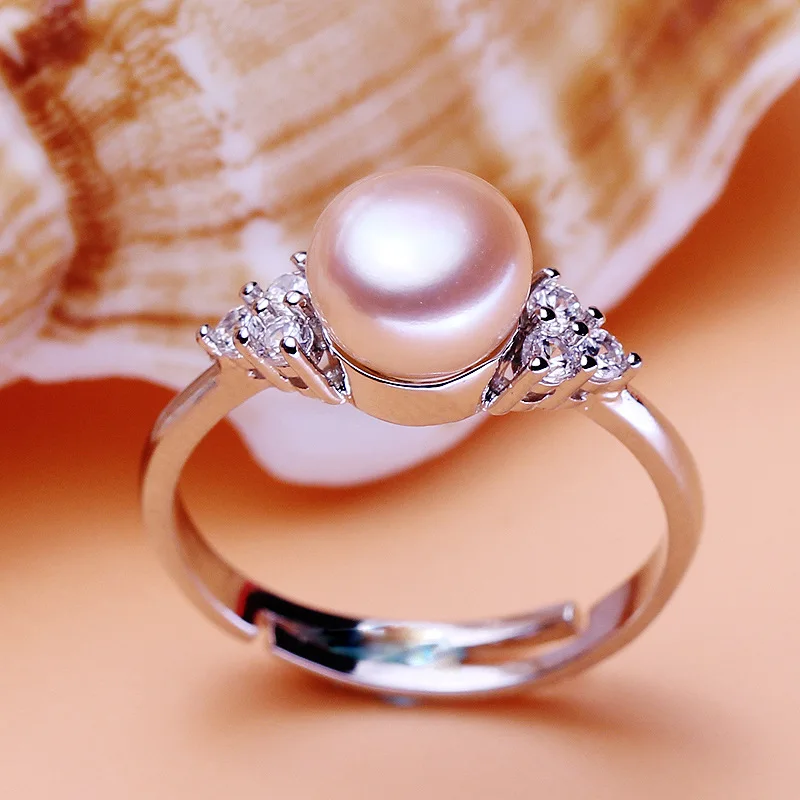 Silver 925 ring female jewelry ring pearl jewelry fashion 8-9mm oblate aniline ringen brand jewelry tiff